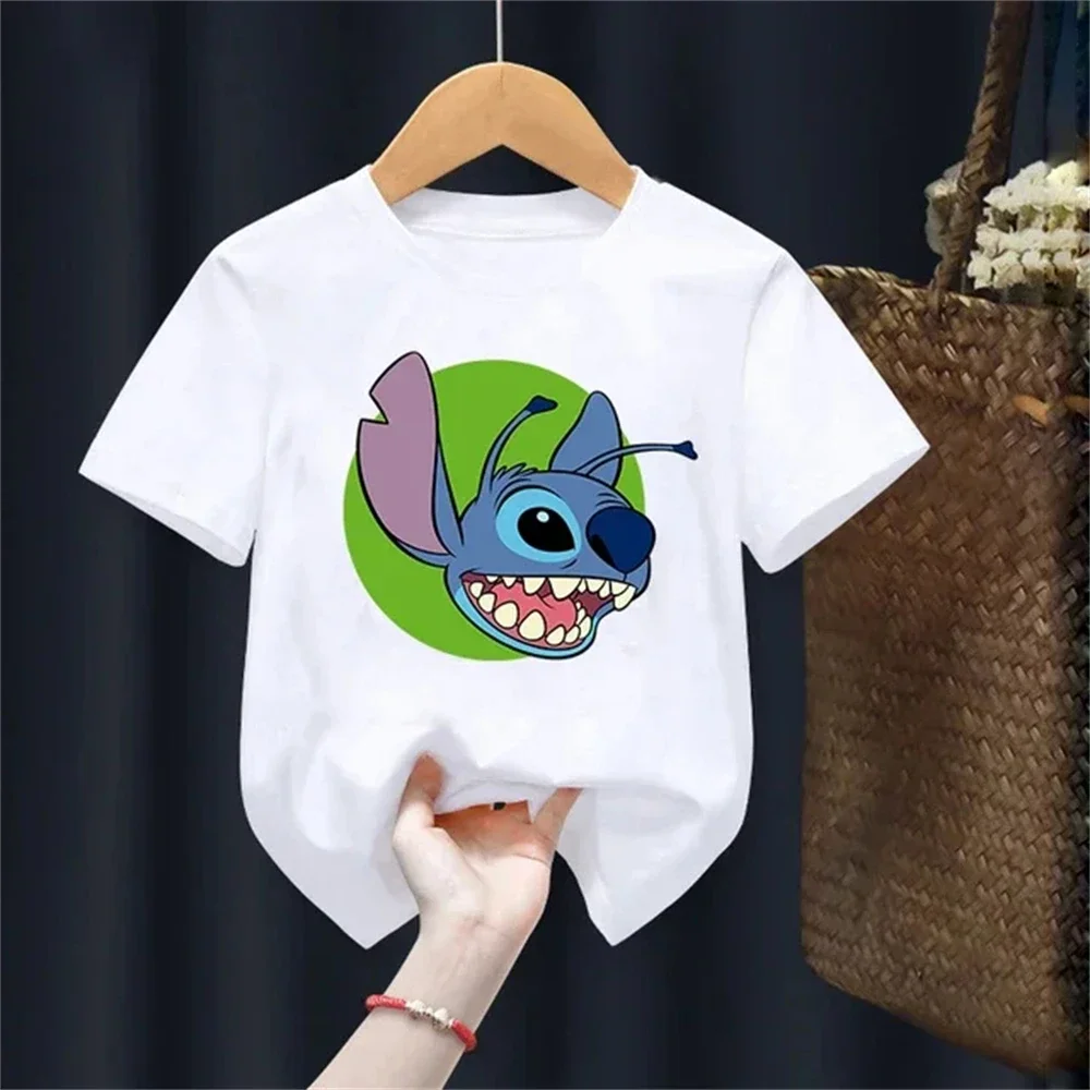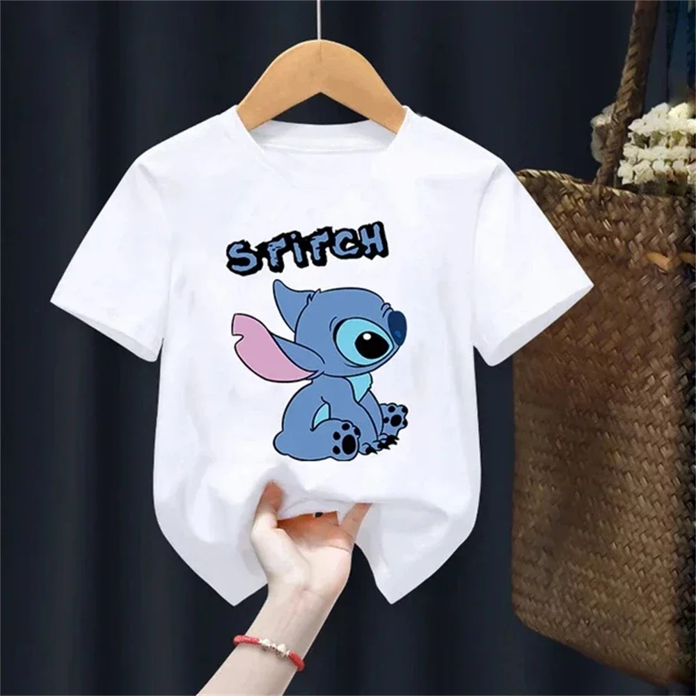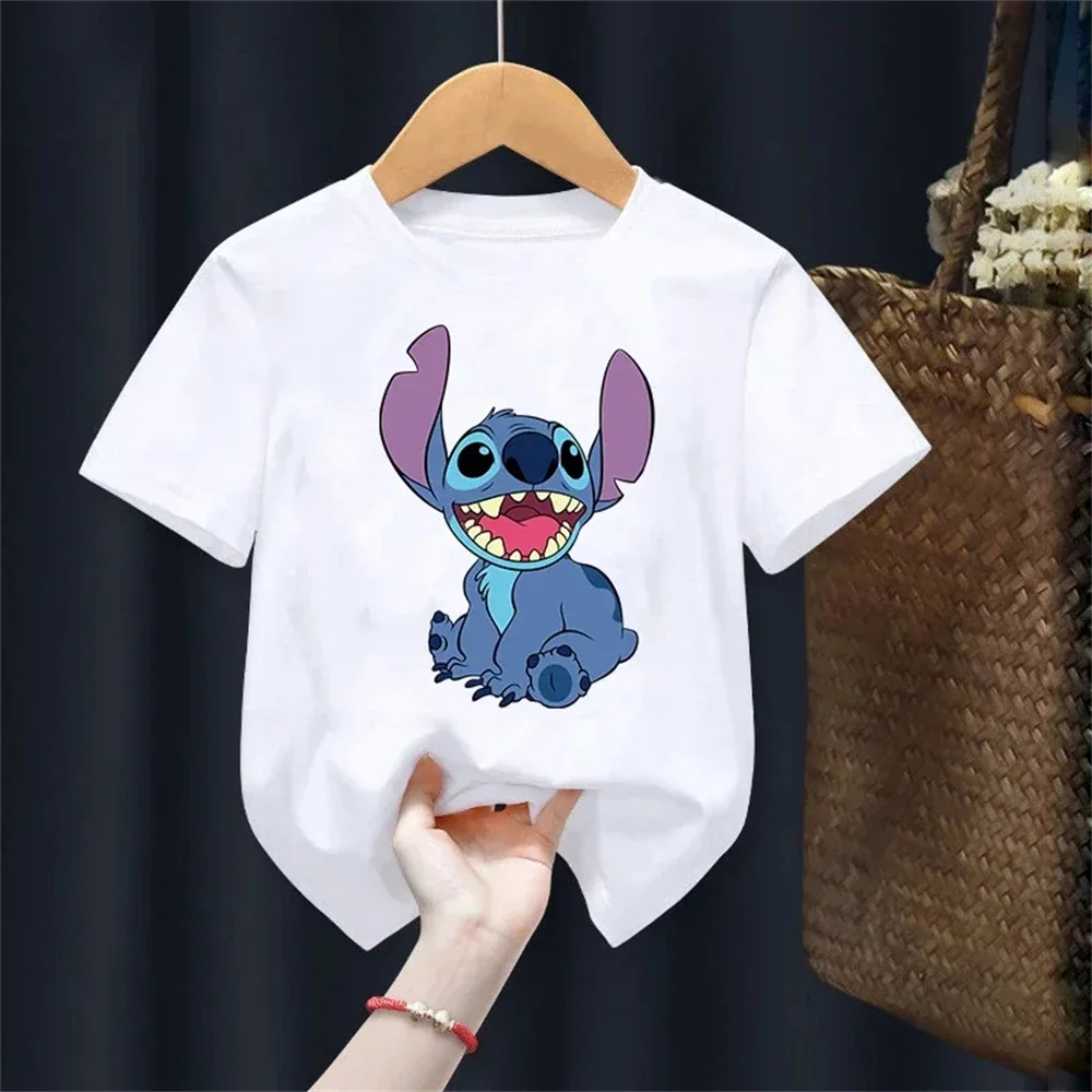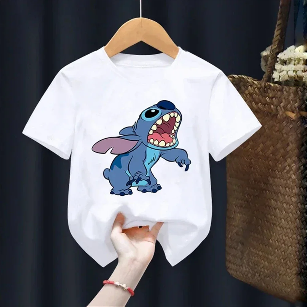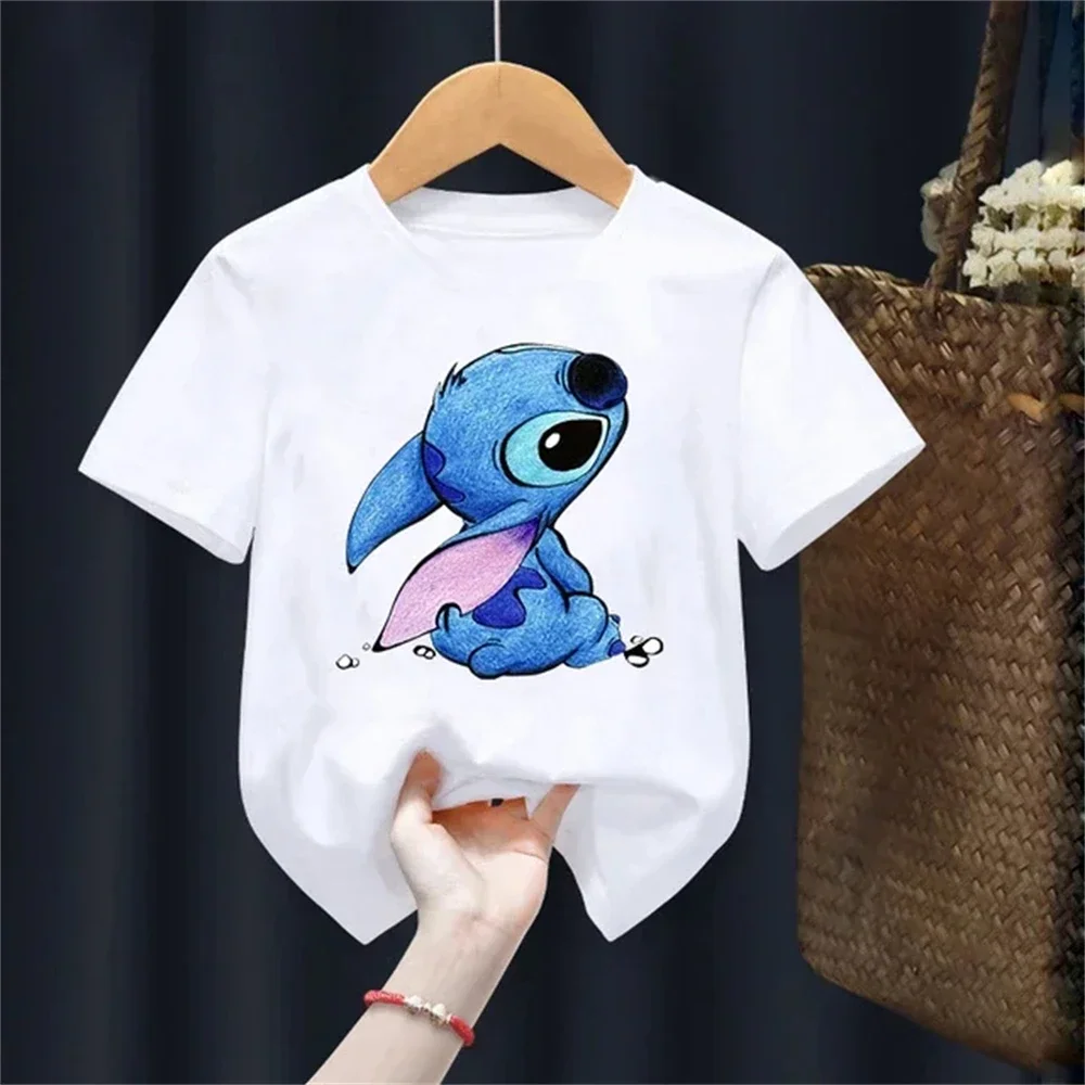 MINISO Lilo Stitch Children T-Shirt Kawaii T Shirt Anime Cartoons Children Casual Clothes Tee Shirt Kid Girl Boy Fashion Y2K Top