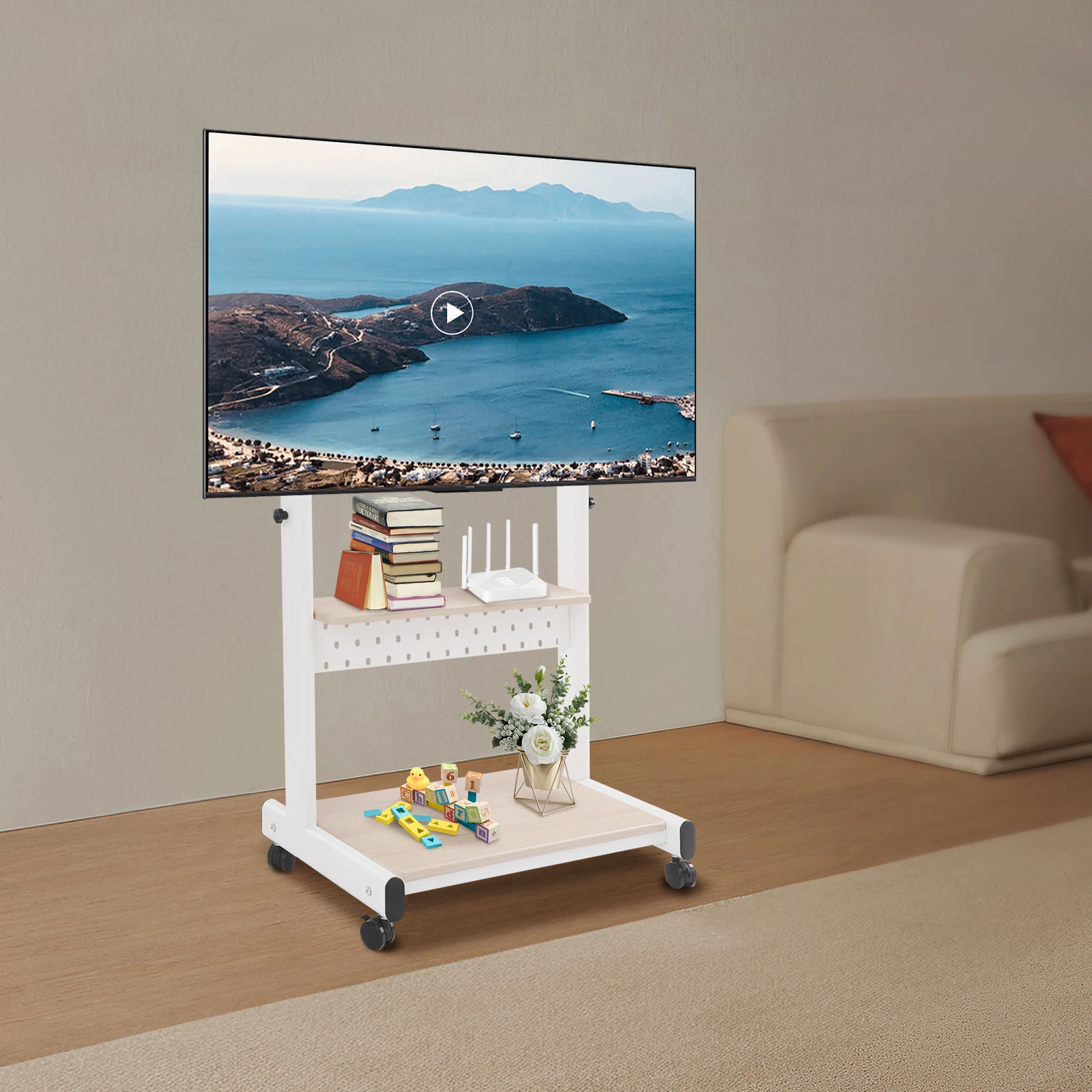 Adjustable Height: With a height adjustment between 42.72 and 50.59 inches, it’s ideal for different sizes of TVs and sofas, keeping the screen glare-free and providing you with a comfortable catch-up experience.