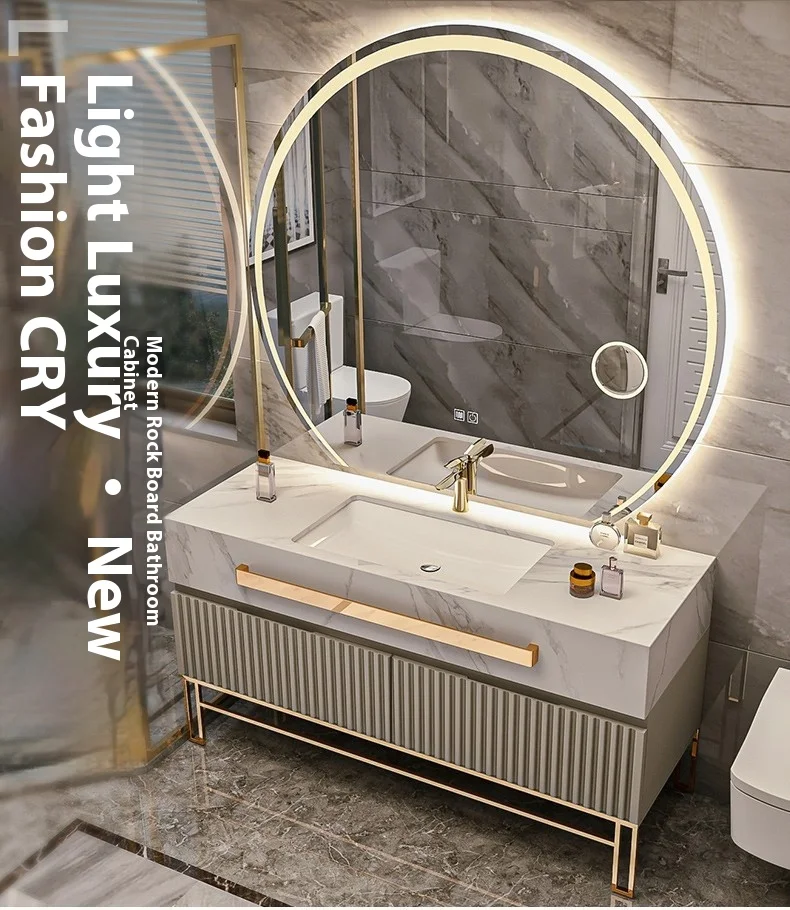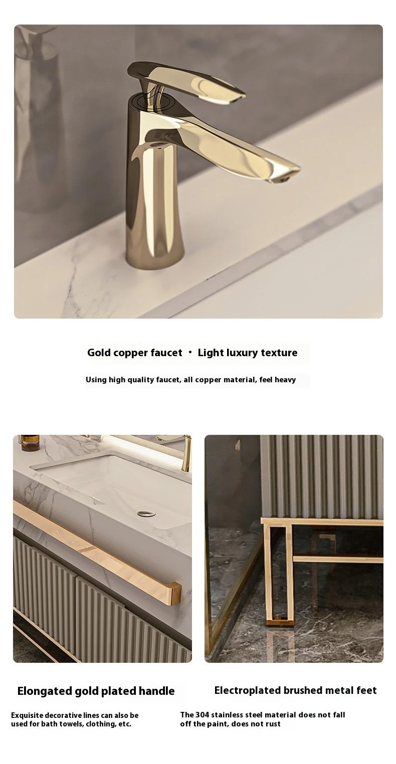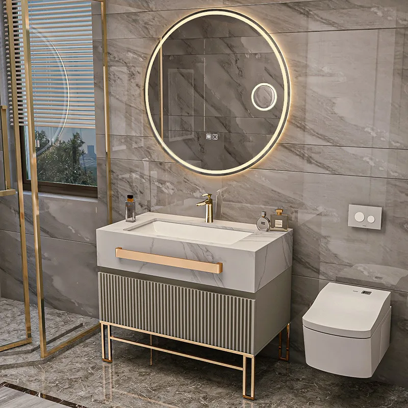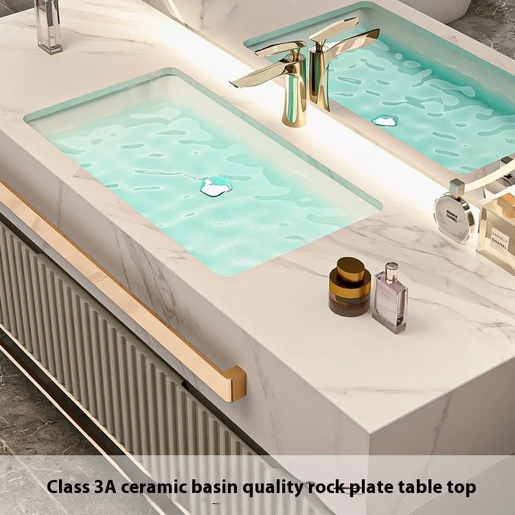 Modern Luxury Rock Board Bathroom Cabinet Combination Oak Paint Smart Floor-Type Washbasin Light Luxury Design Style