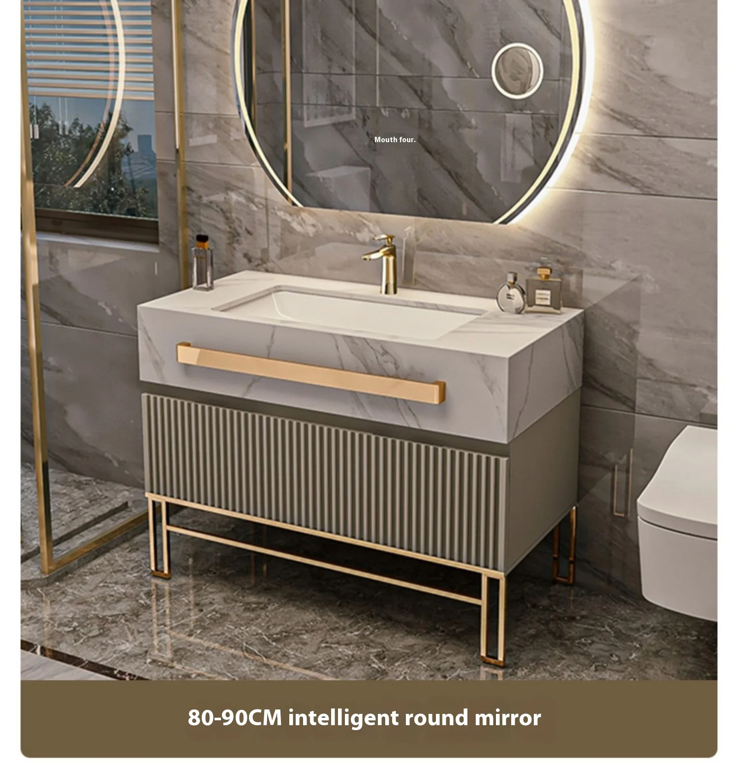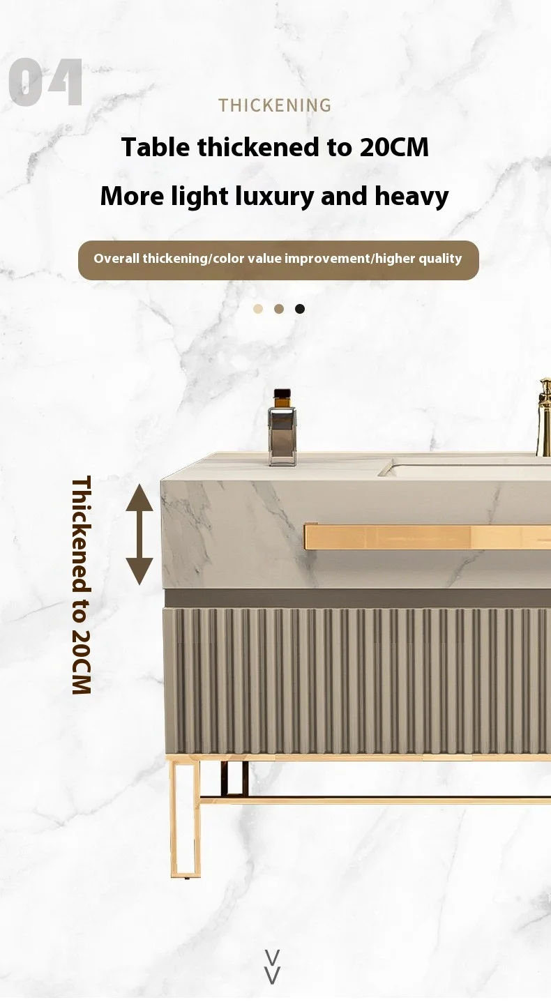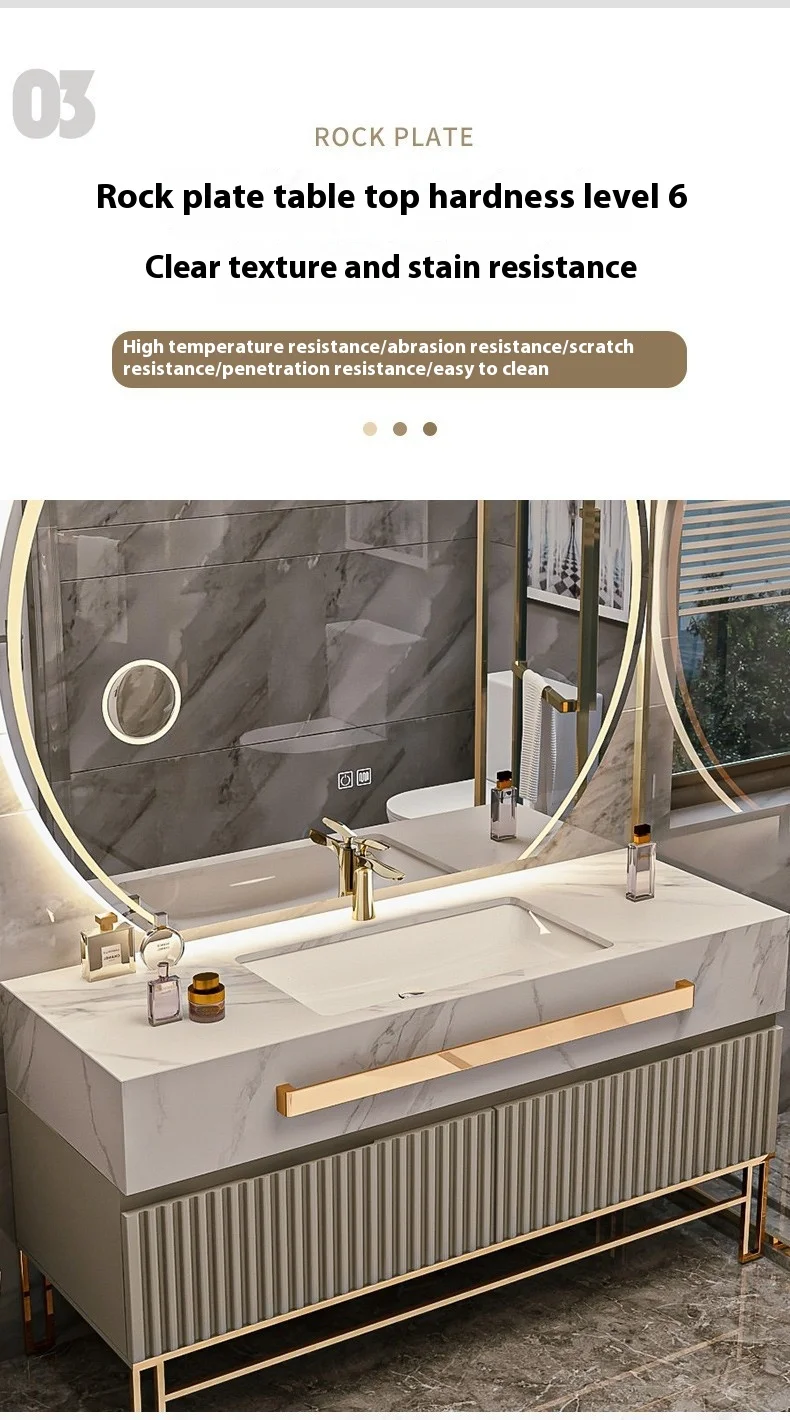 Modern Luxury Rock Board Bathroom Cabinet Combination Oak Paint Smart Floor-Type Washbasin Light Luxury Design Style