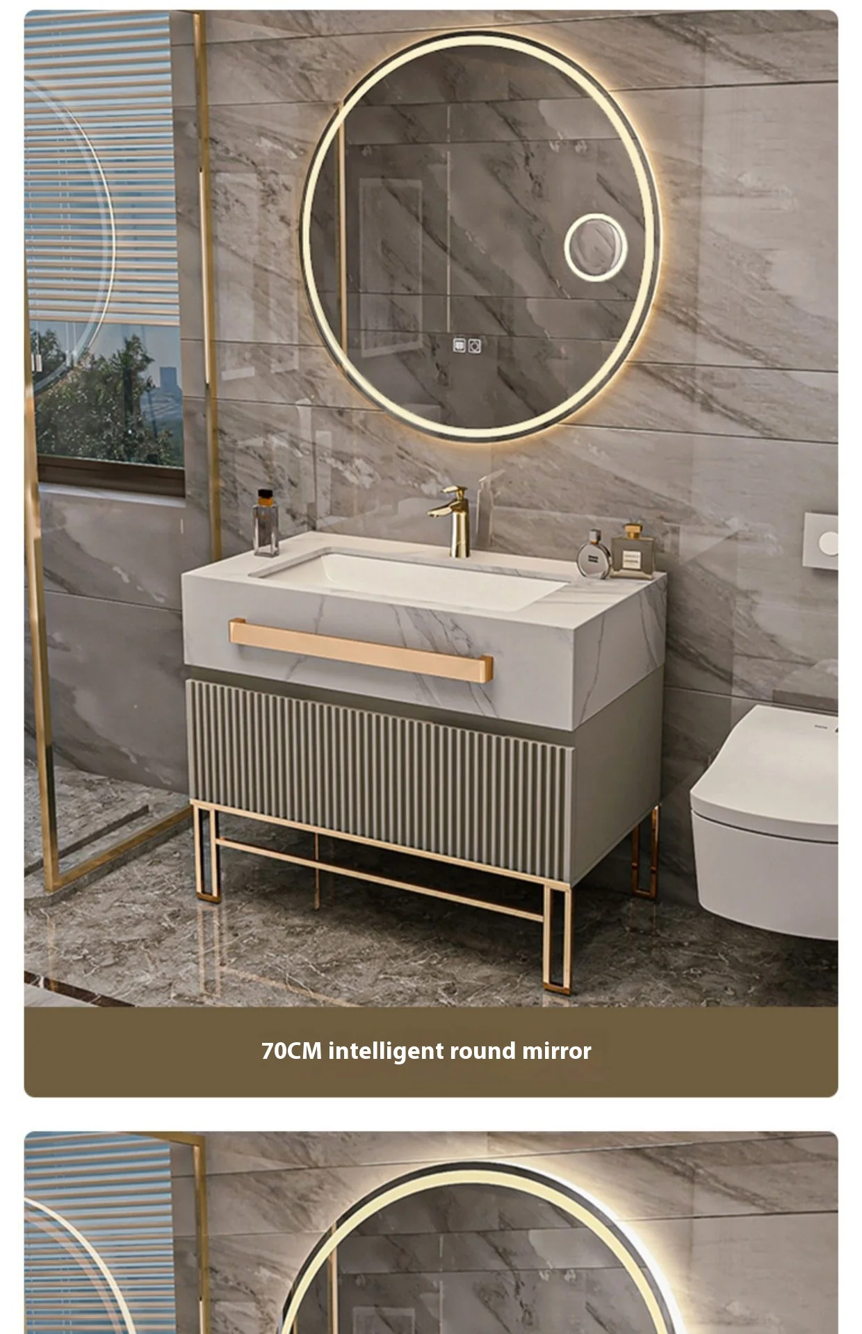 Be the first to review “Modern Luxury Rock Board Bathroom Cabinet Combination Oak Paint Smart Floor-Type Washbasin Light Luxury Design Style”