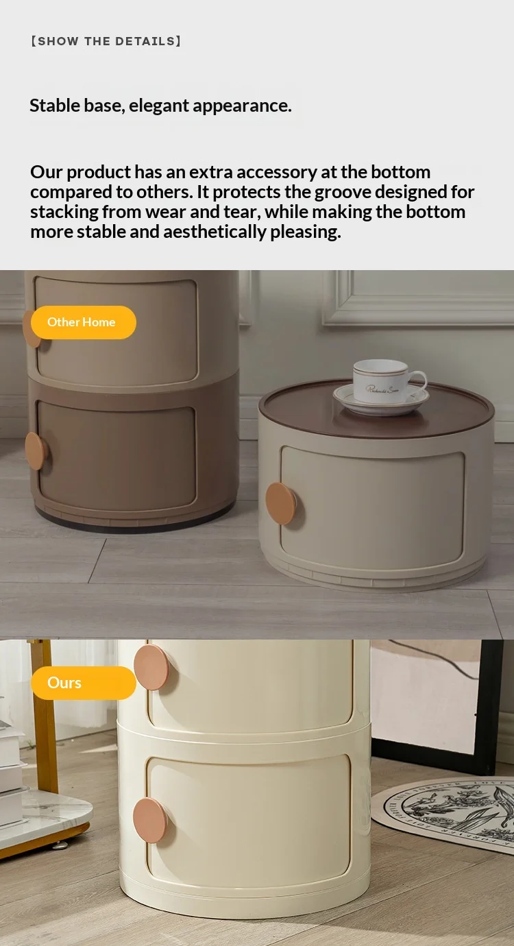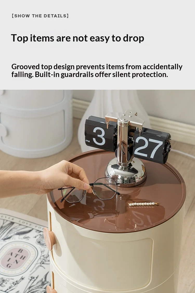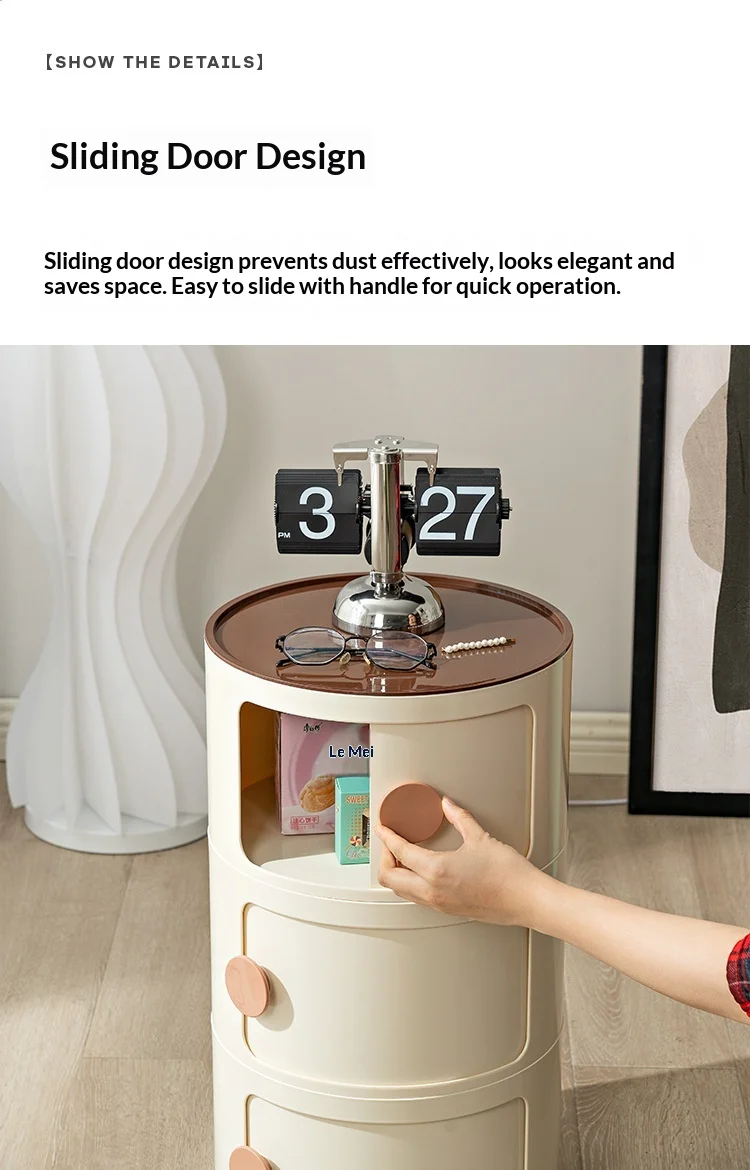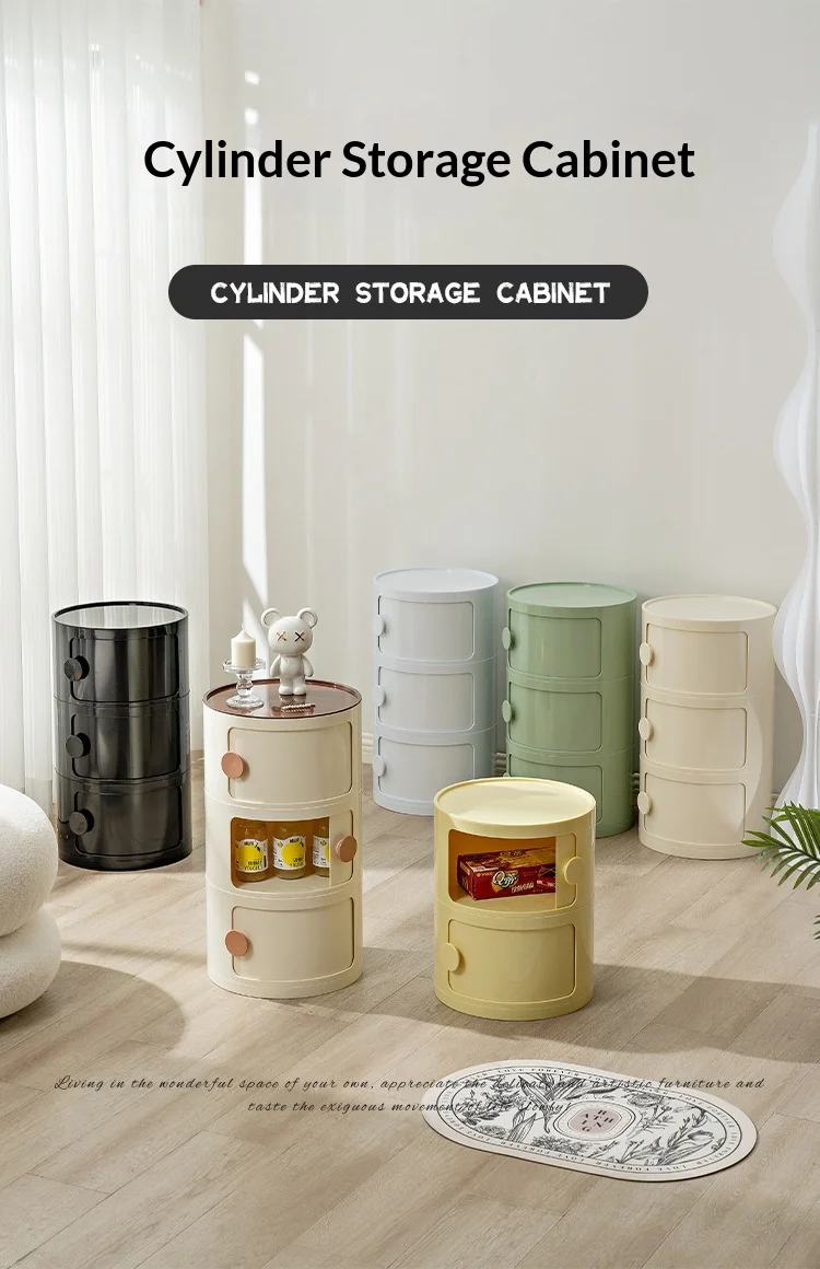 Modern Nordic Round Plastic Nightstand Bedside Table Small Bedroom Storage Drawer Cute Cartoon Instagram Cabinet Night Stand