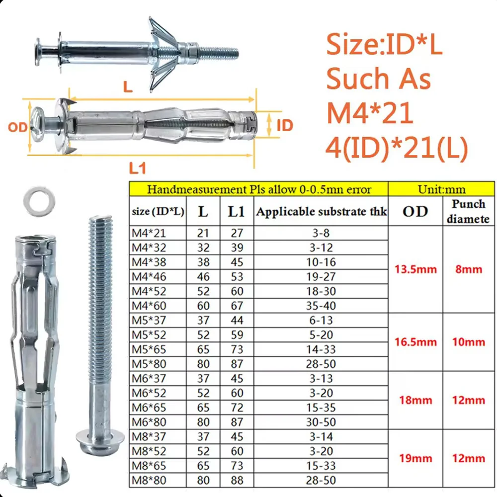5 reviews for Molly Expansion Bolt Set Heavy Duty Hollow Drive Wall Anchor Screws Drywall Cavity Plug Dowel for Plasterboard Hanging Fasteners