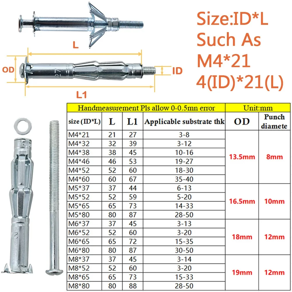 Molly Expansion Bolt Set M4 M5 M6 M8 Practical Drywall Anchor with Screw Self Drilling Wall Home Pierced Gypsum Board Fiberboard