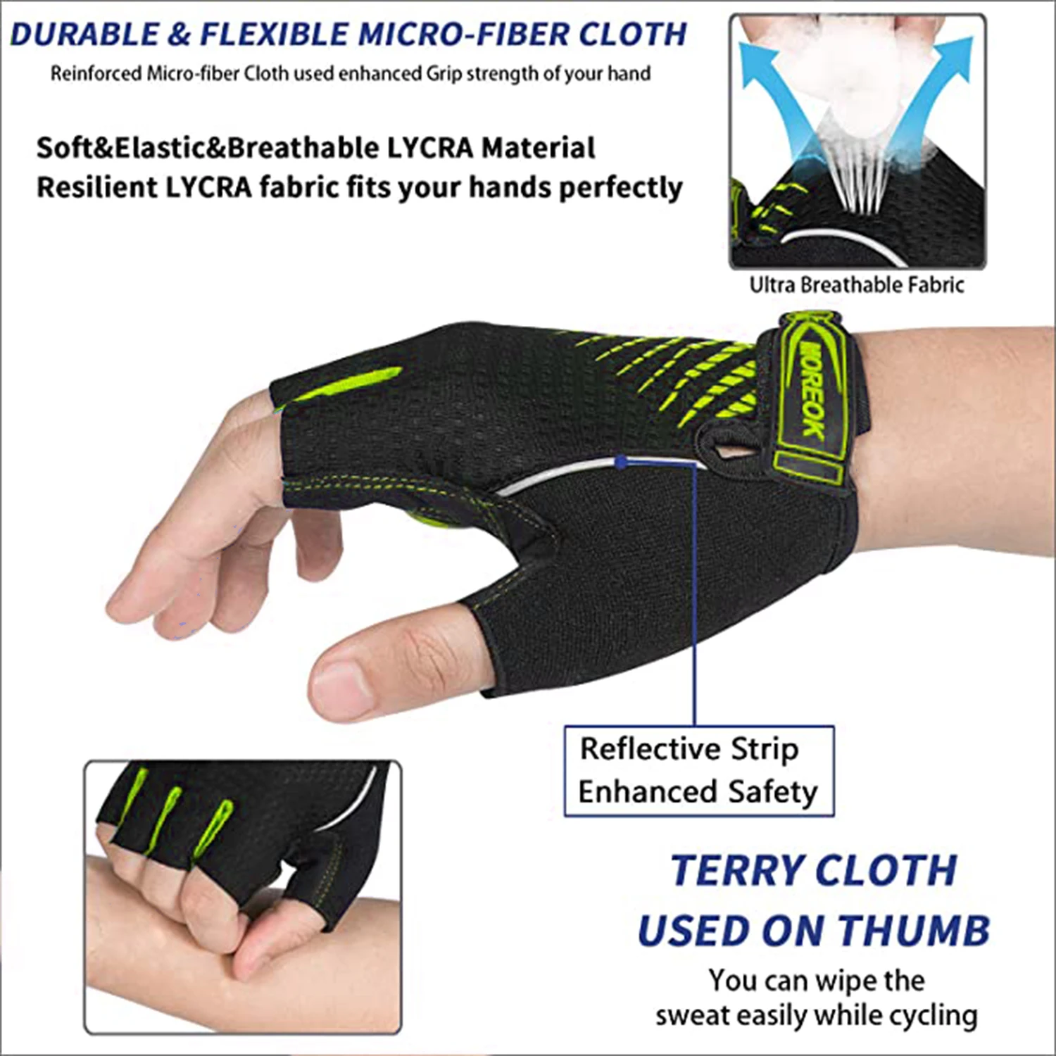 MOREOK Bike Cycling Gloves Half Finger Breathable 5MM Gel Pads Bicycle Gloves Shock-Absorbing Mountain Bike Road Biking Gloves Men Women