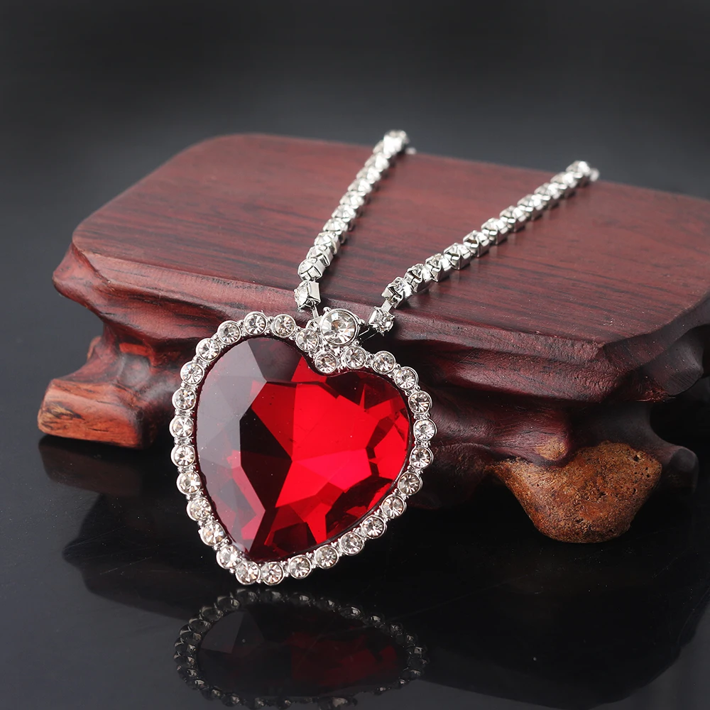 Movie TITANIC Heart Of the Ocean Necklace Love Forever Blue Red Crystal Pendants Necklace For Women Wedding Party Jewelry Gift