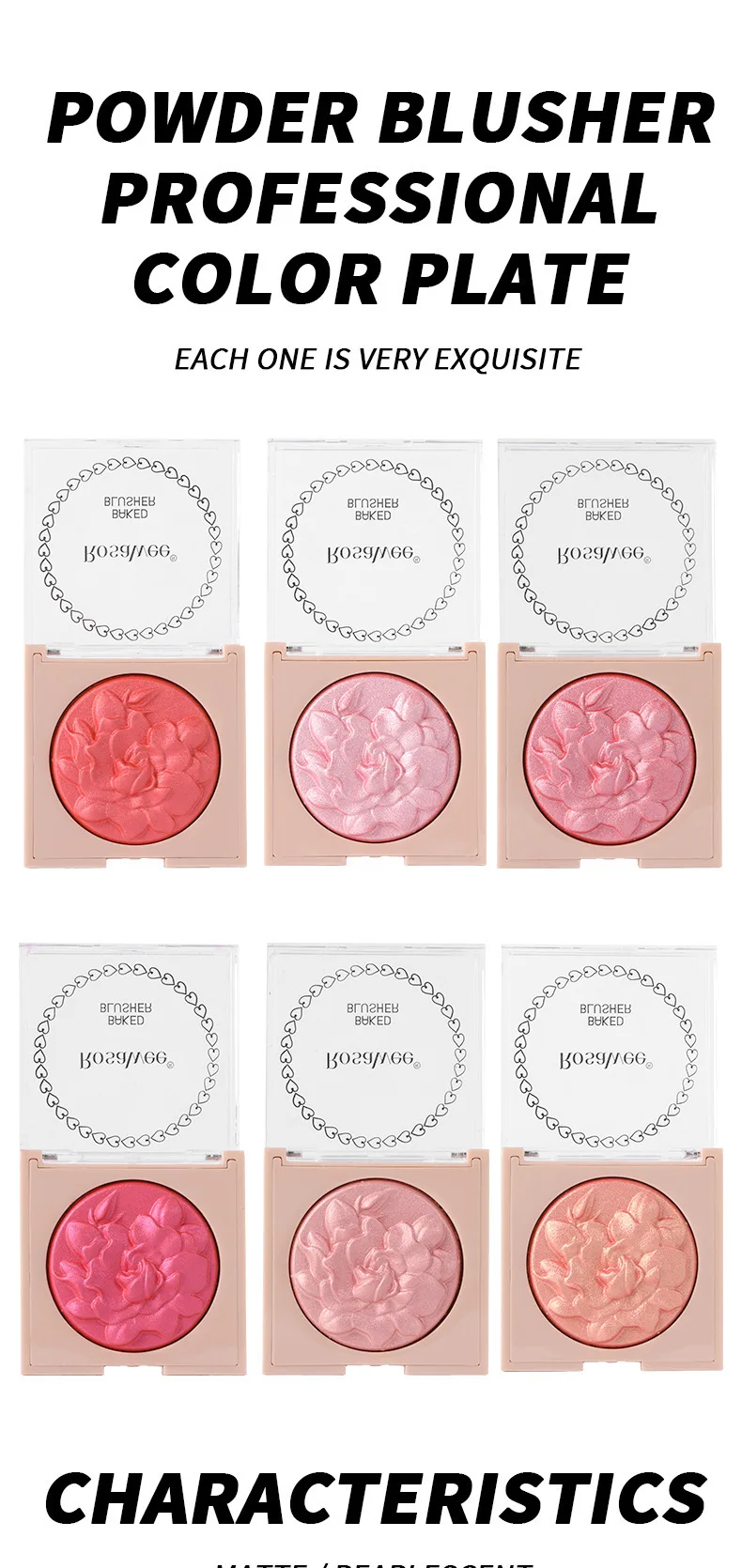 Multi-Color Glossy Blush Highlighter, Baking Process, Moisturizing and Glossy Makeup Effect, with Pearlescent Brightening Effect