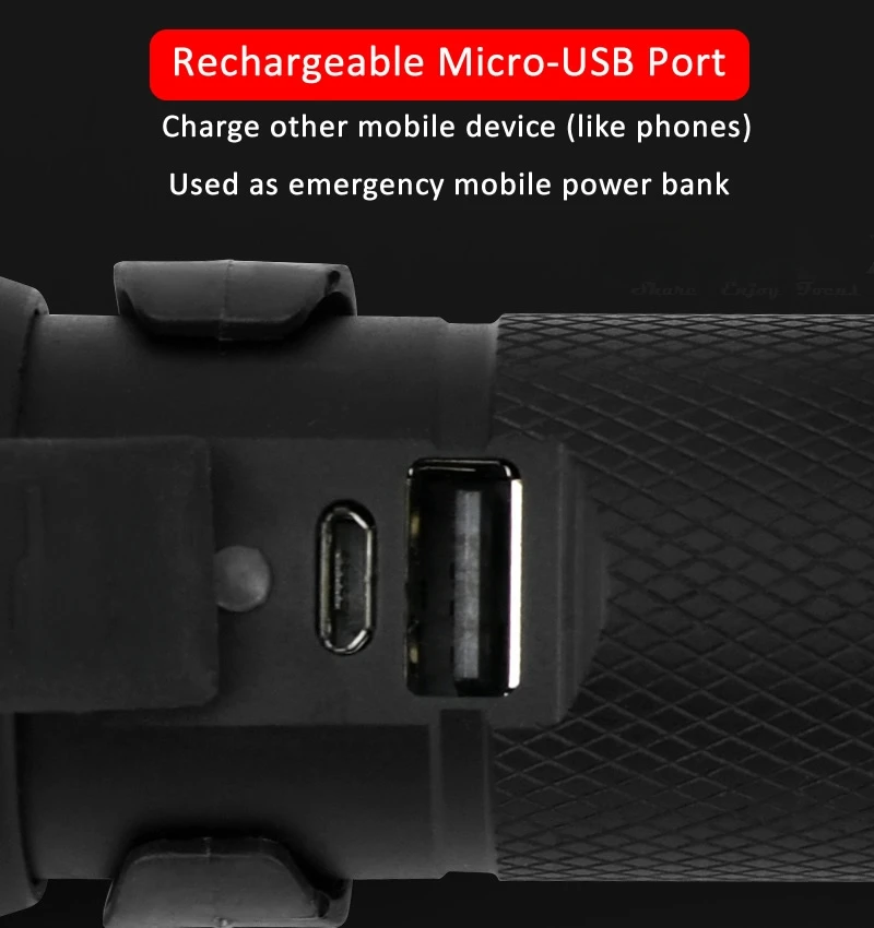 And you can use the USB to support your phone or other device.This flashlight can be as a mobile power source.