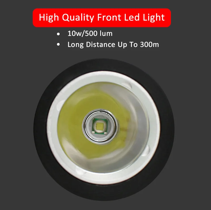 1 The headlights are all bright, semi-bright, explosion flash mode, using domestic 10w led. Range 300 meters