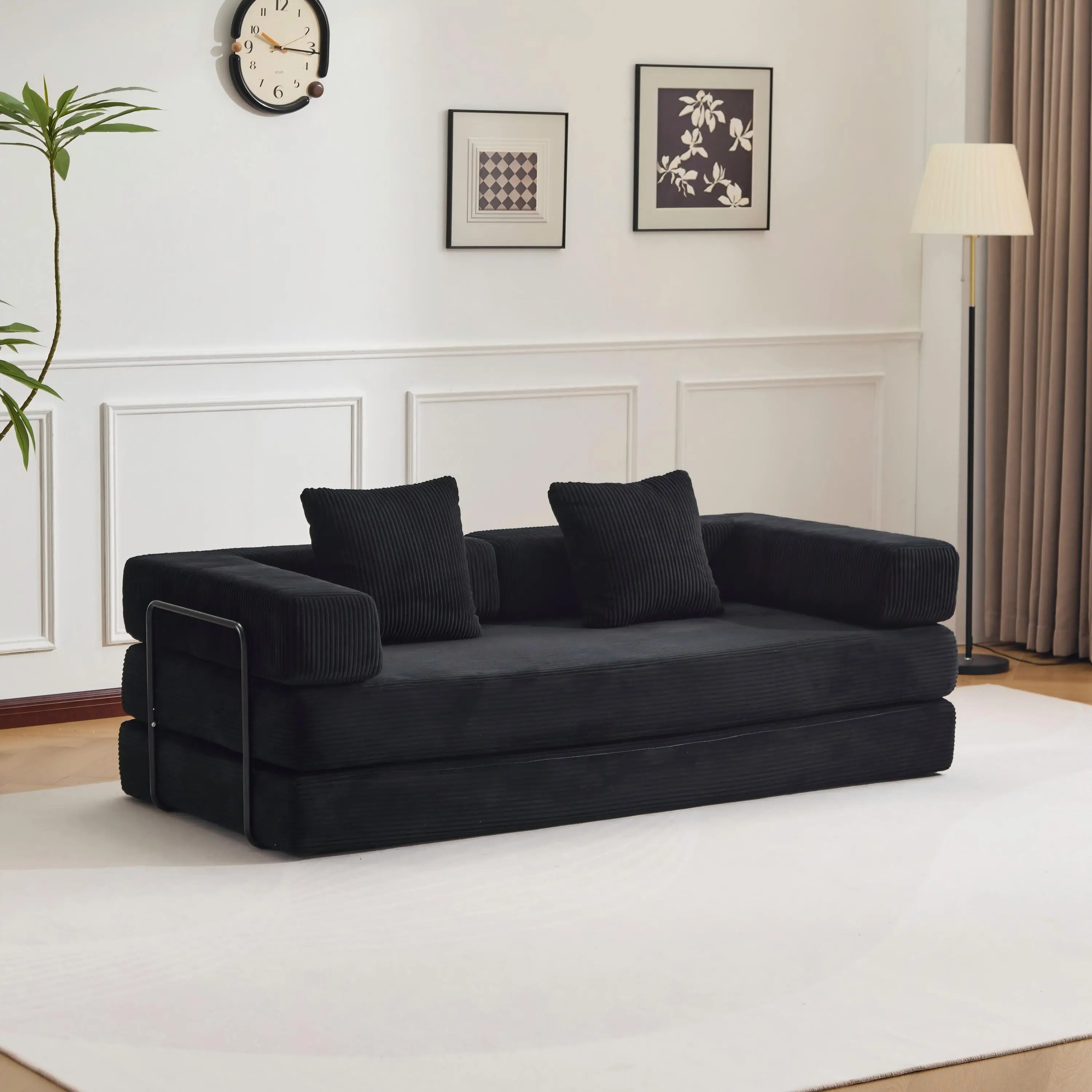 Made from soft, wear-resistant corduroy and filled with high-density sponge, this sofa bed ensures long-lasting comfort and durability while adding a touch of elegant dark blue style to any room. -