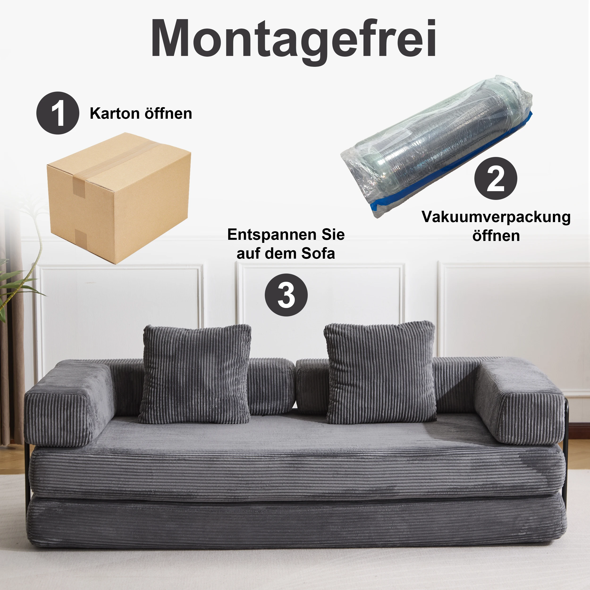 Enjoy hassle-free setup! Simply unbox the compressed sofa, unfold it, and watch as it gradually expands to its full size over 72-96 hours—ready to use without any tools or complicated instructions. -