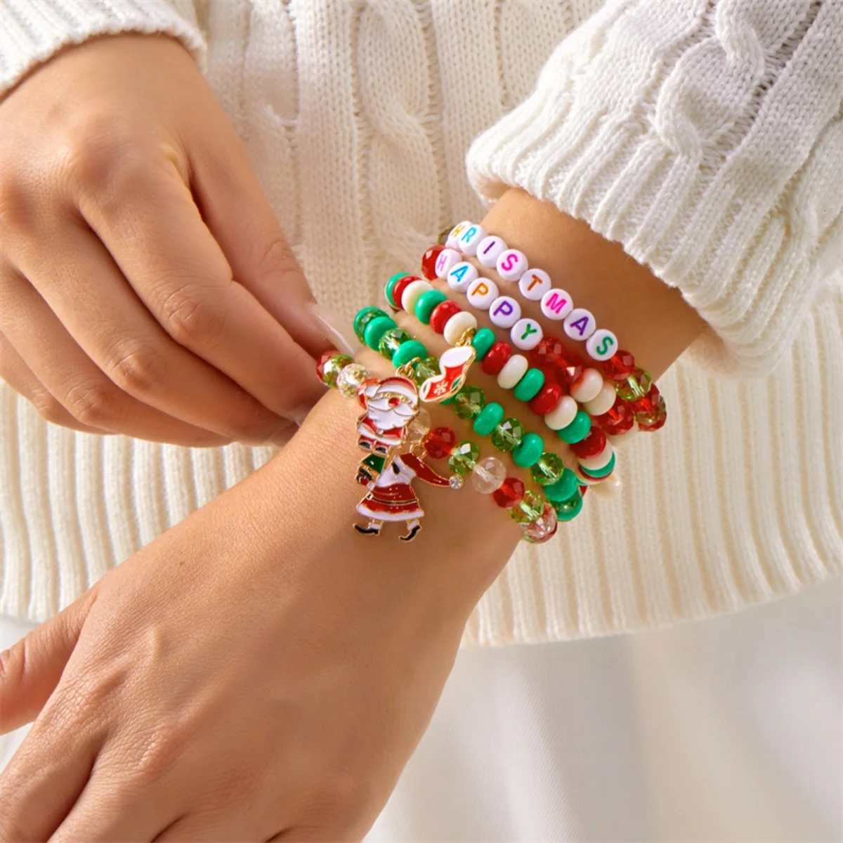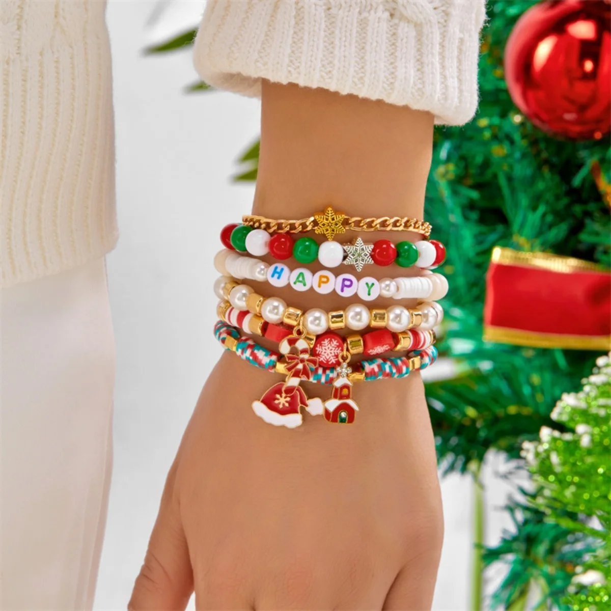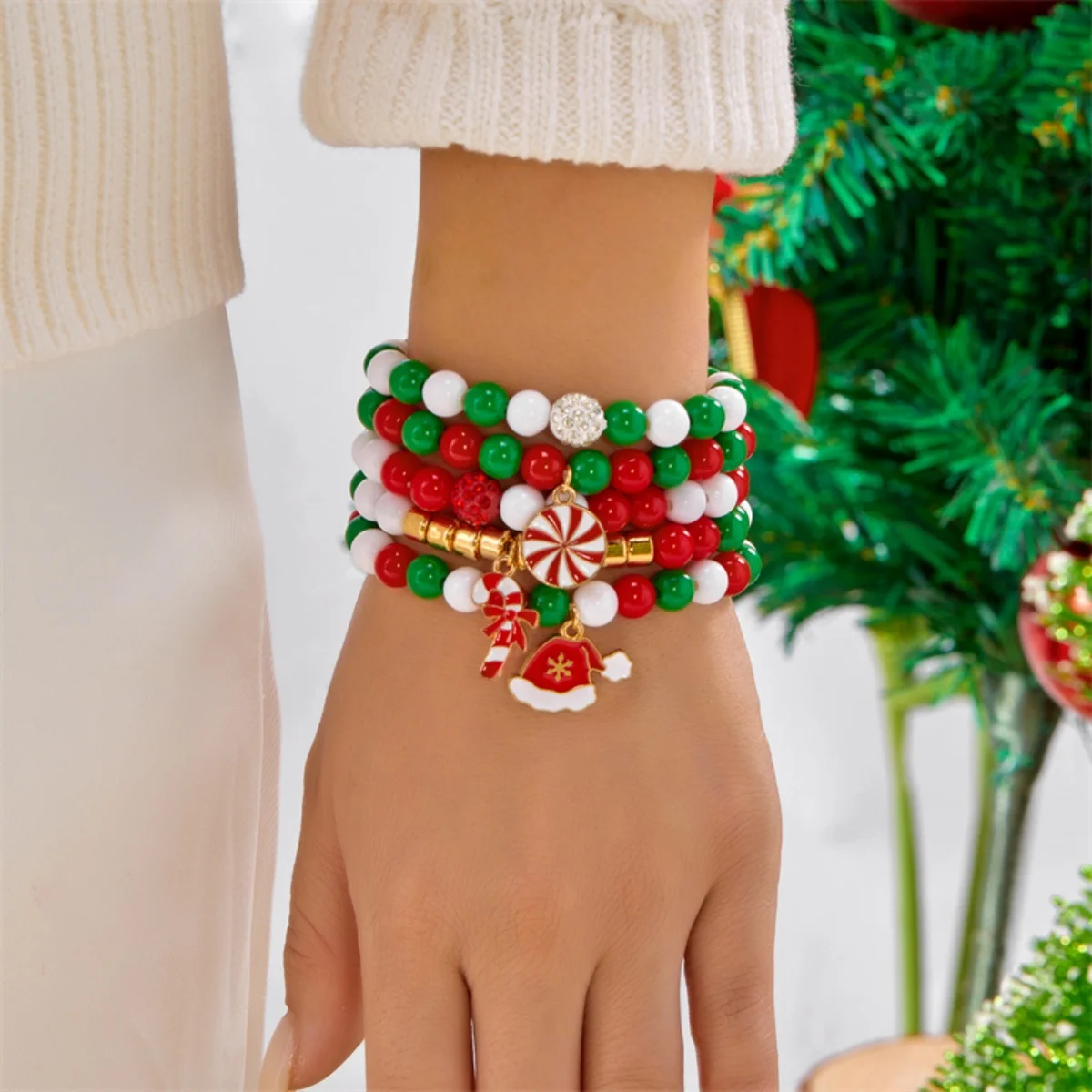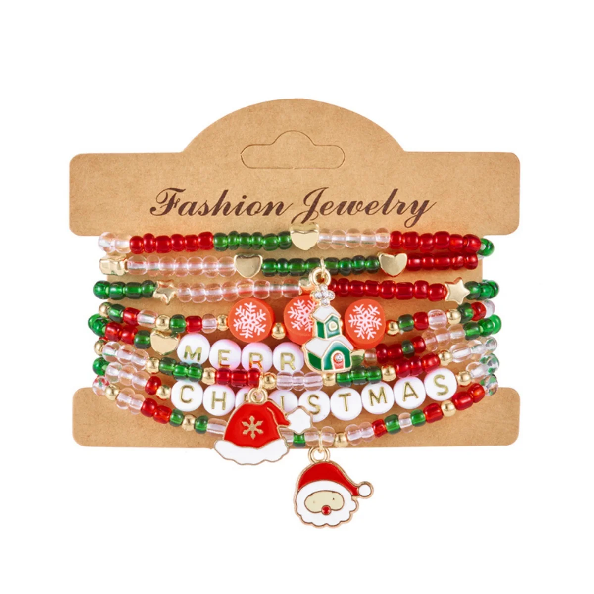 Multi-Layer Christmas Bracelet Crutch Candy Santa Claus Deer Snowflake Snowman Wreath Rice Beaded Bangle For Women Men Jewelry