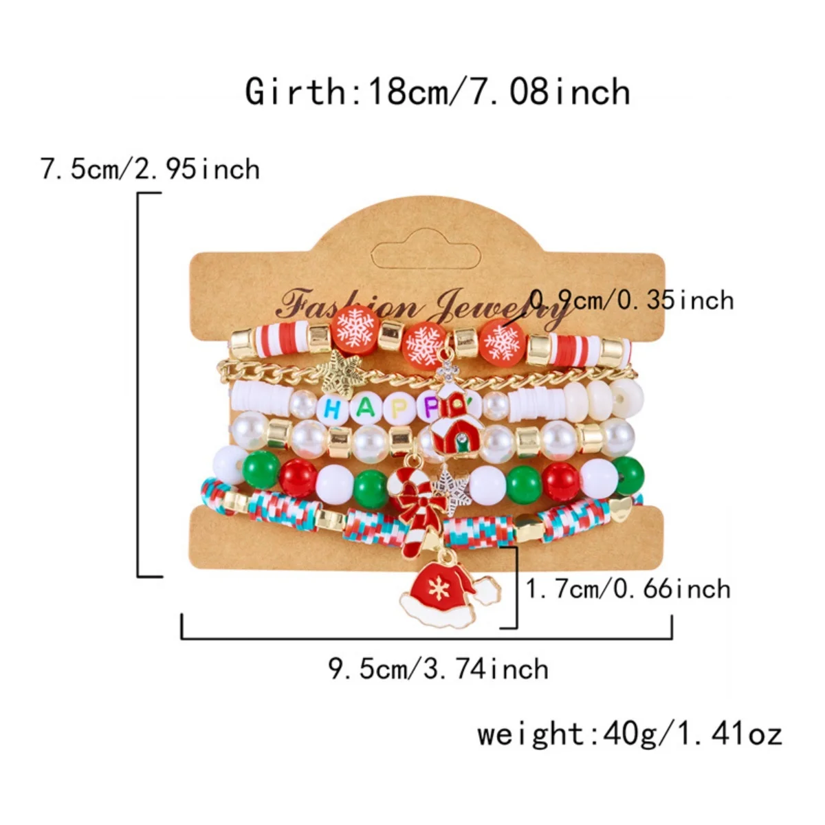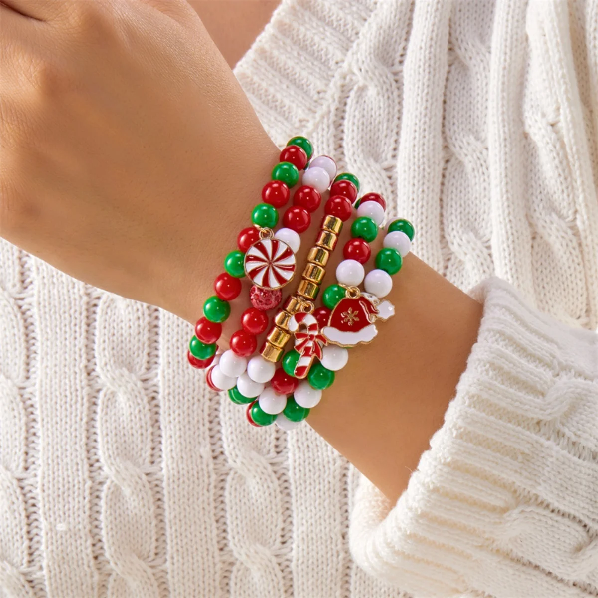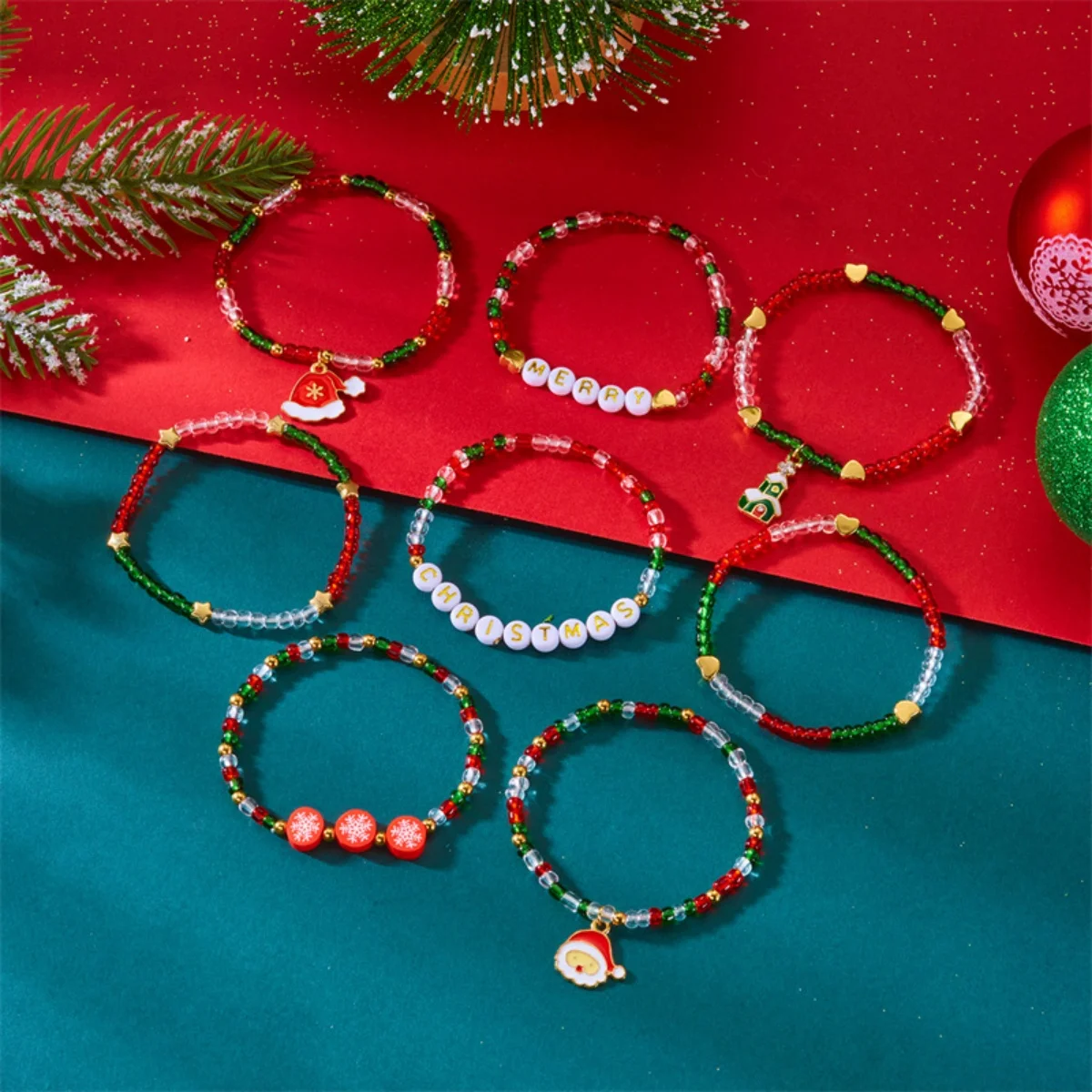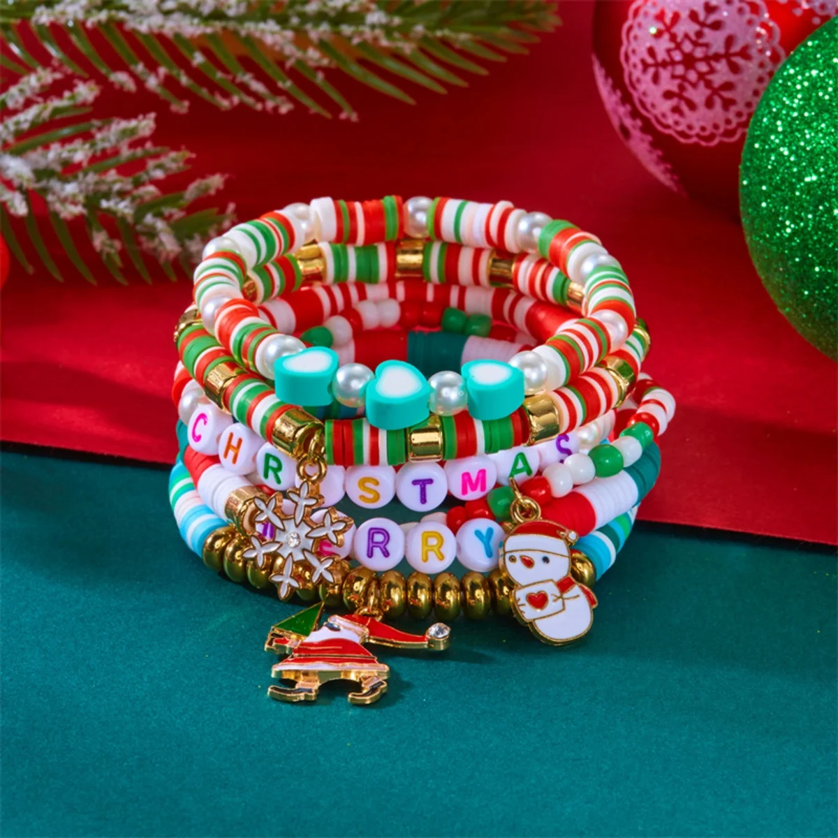 Multi-Layer Christmas Bracelet Crutch Candy Santa Claus Deer Snowflake Snowman Wreath Rice Beaded Bangle For Women Men Jewelry