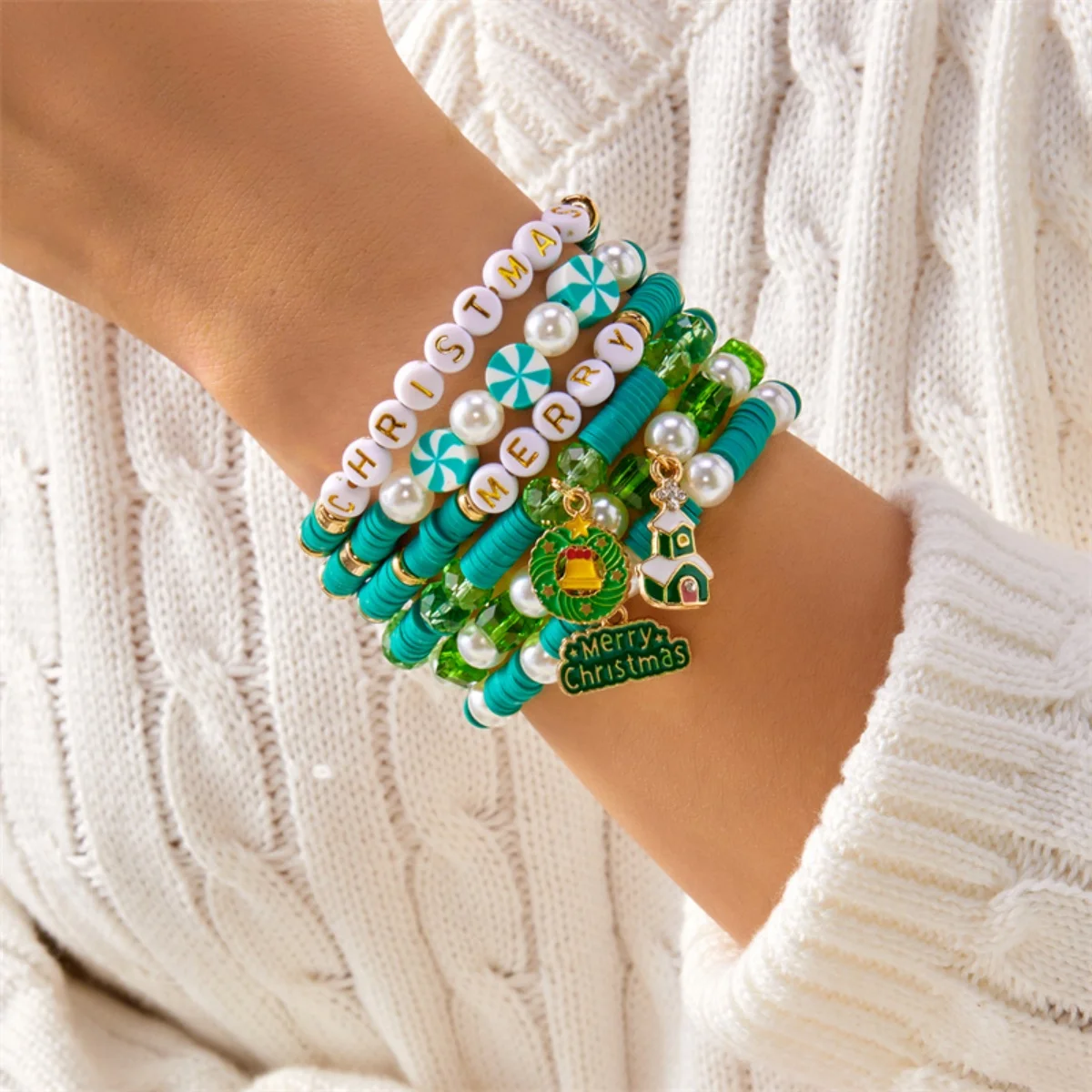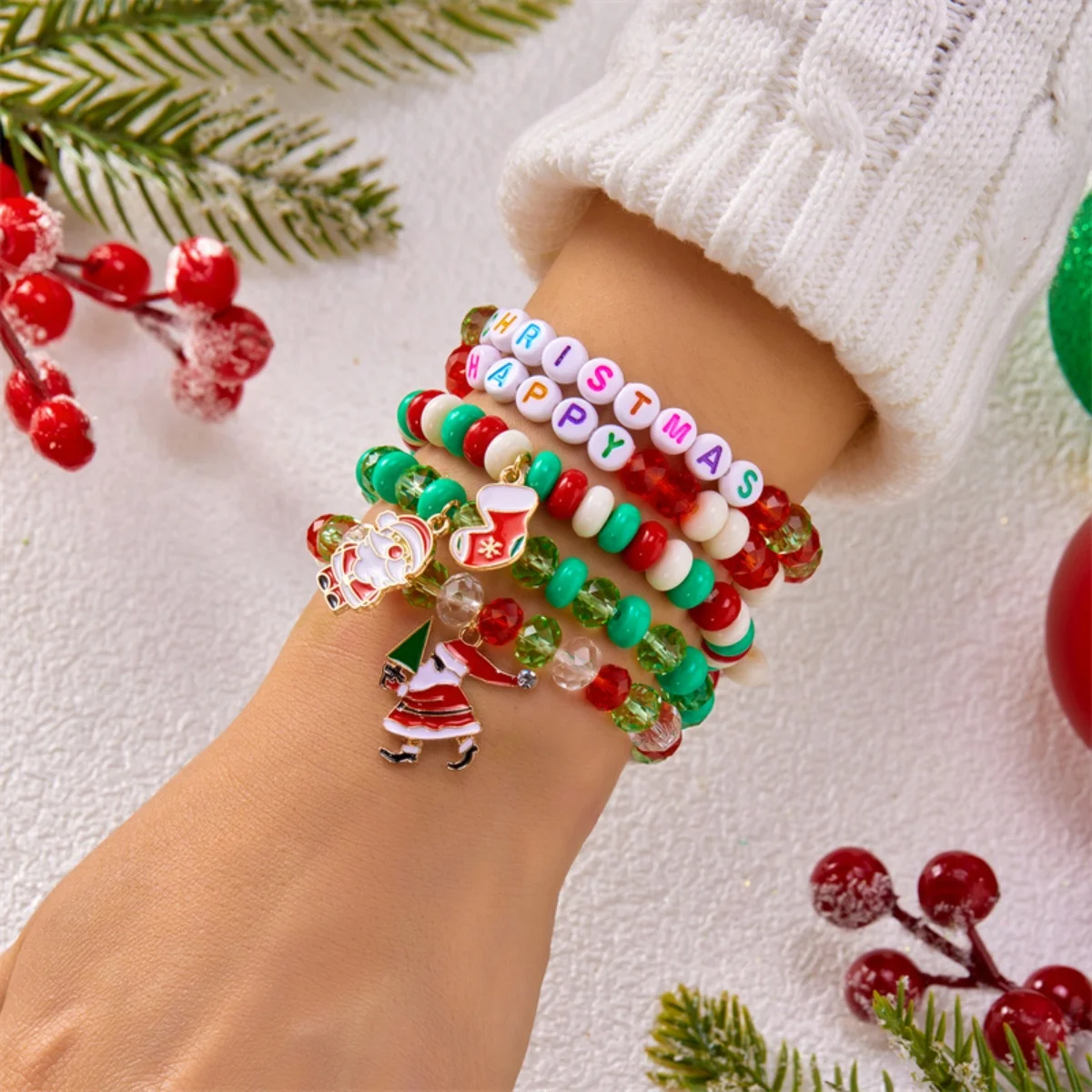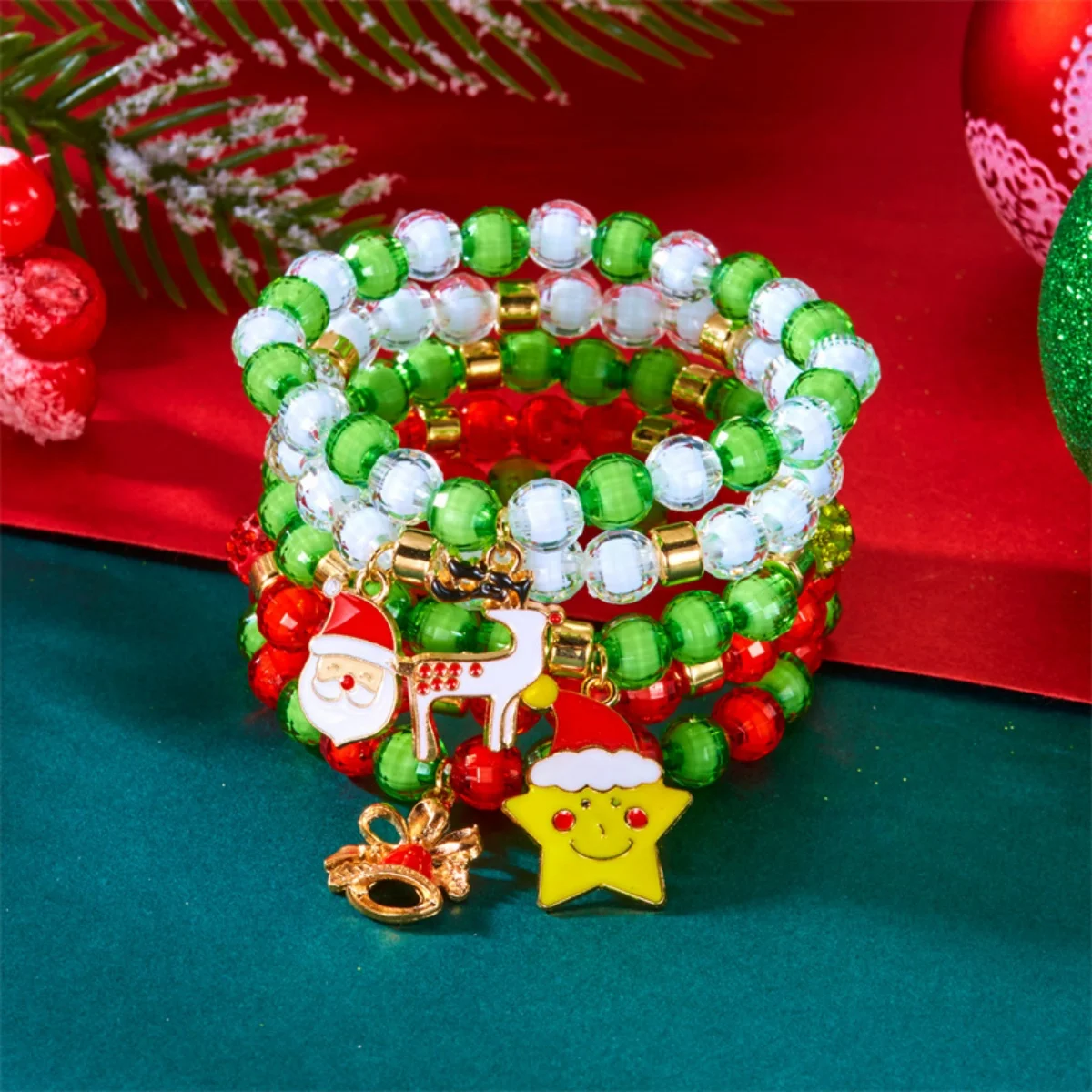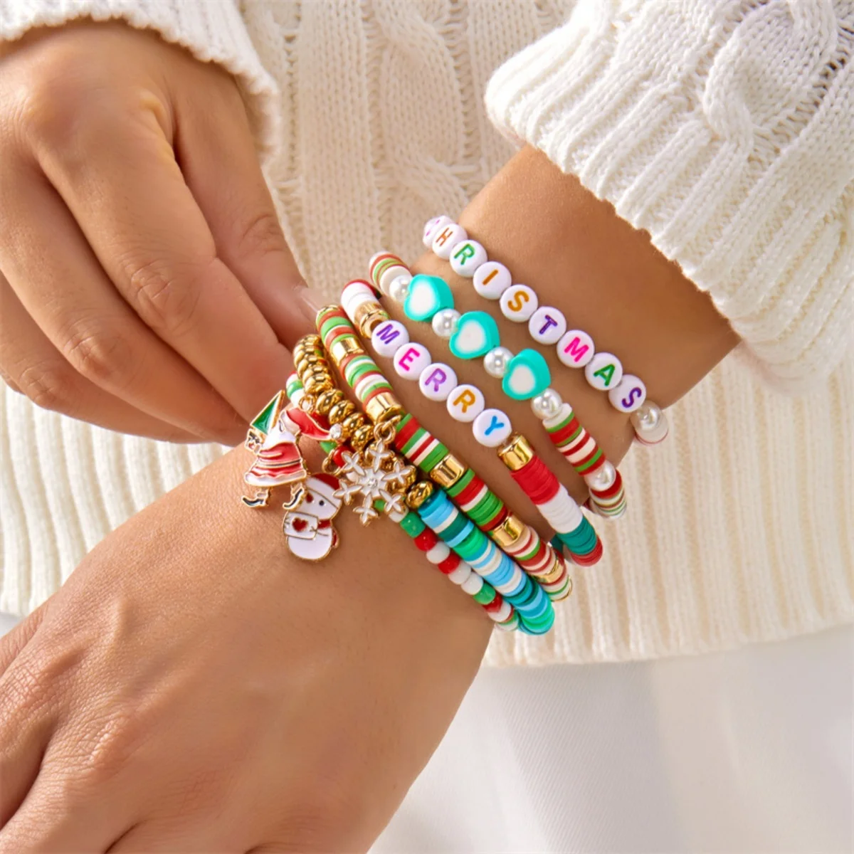 Multi-Layer Christmas Bracelet Crutch Candy Santa Claus Deer Snowflake Snowman Wreath Rice Beaded Bangle For Women Men Jewelry