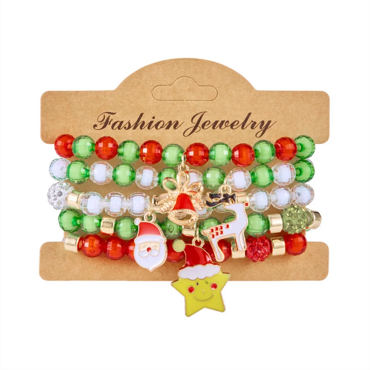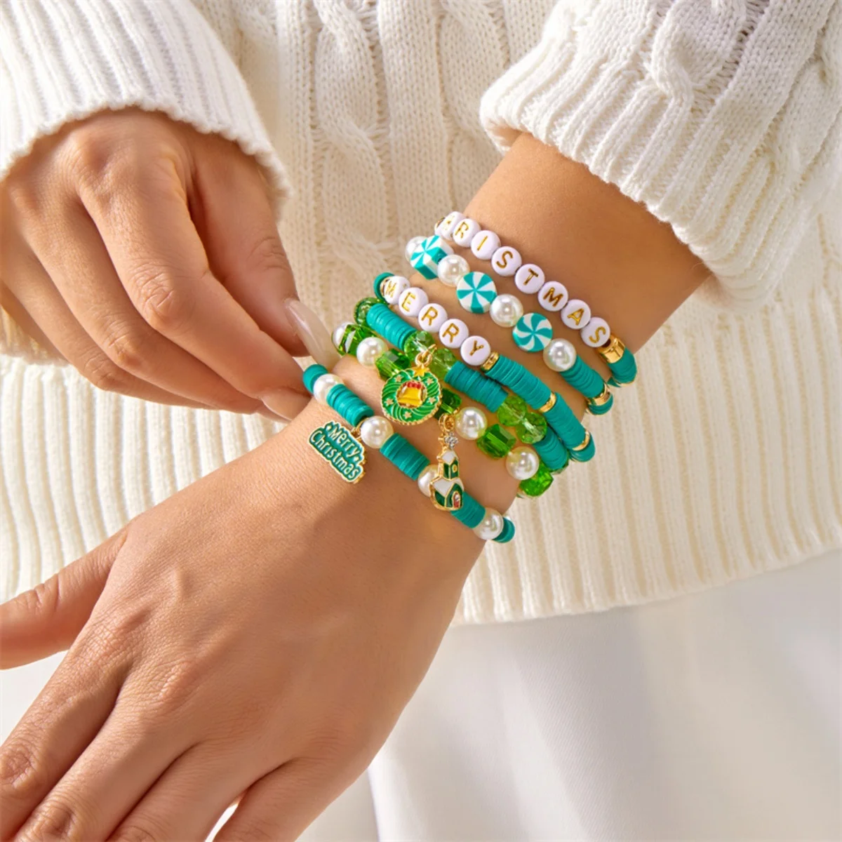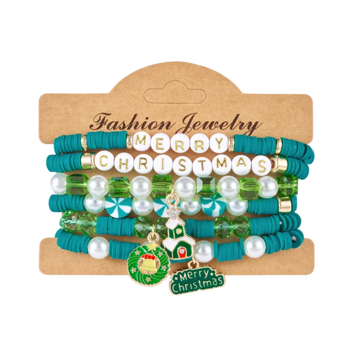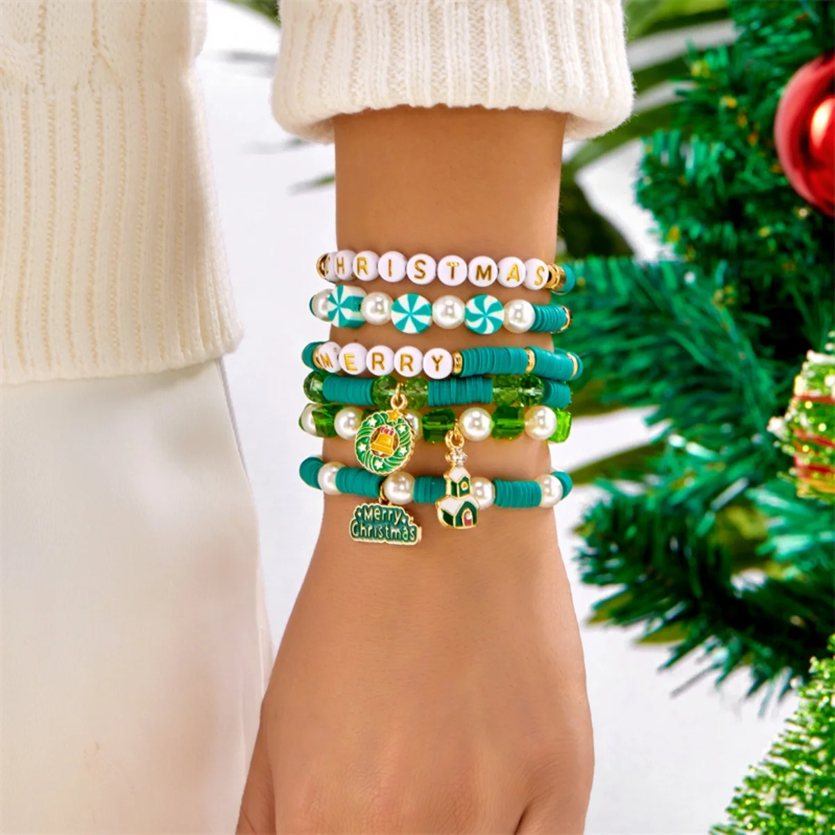 Multi-Layer Christmas Bracelet Crutch Candy Santa Claus Deer Snowflake Snowman Wreath Rice Beaded Bangle For Women Men Jewelry