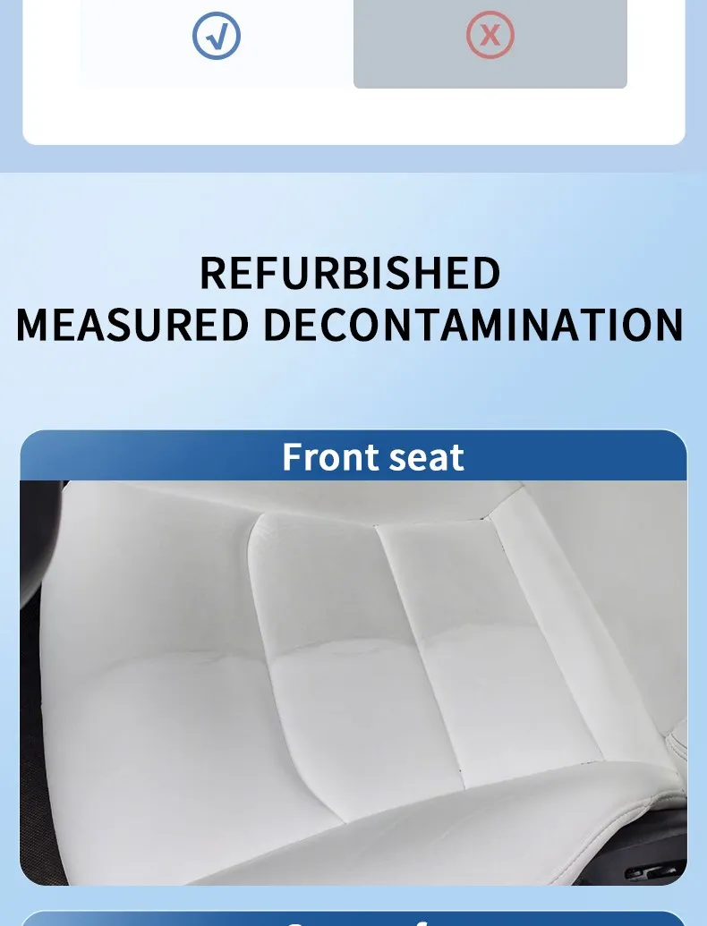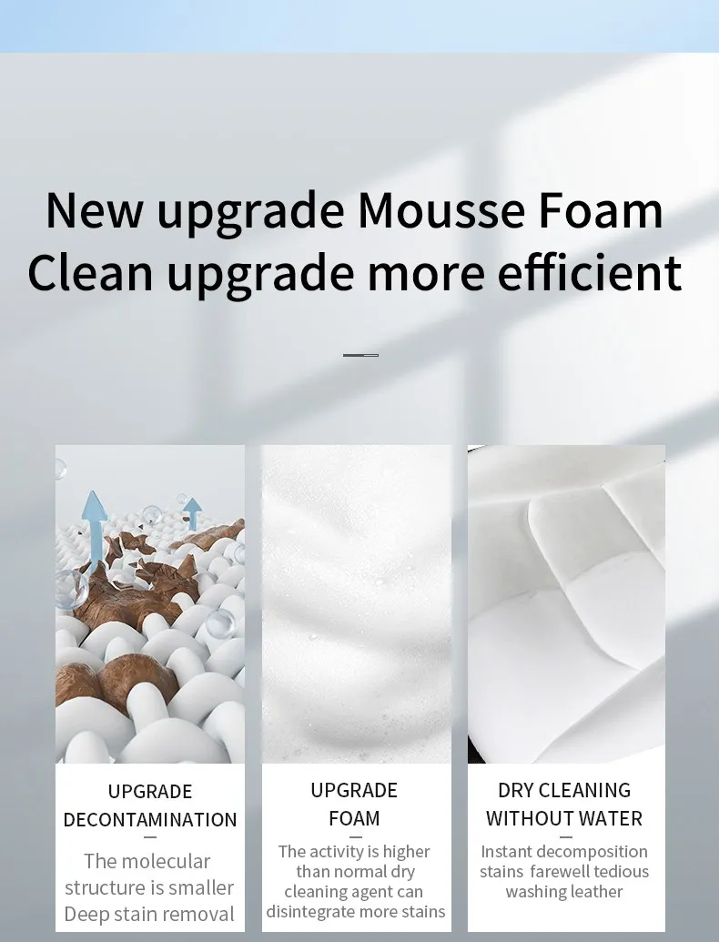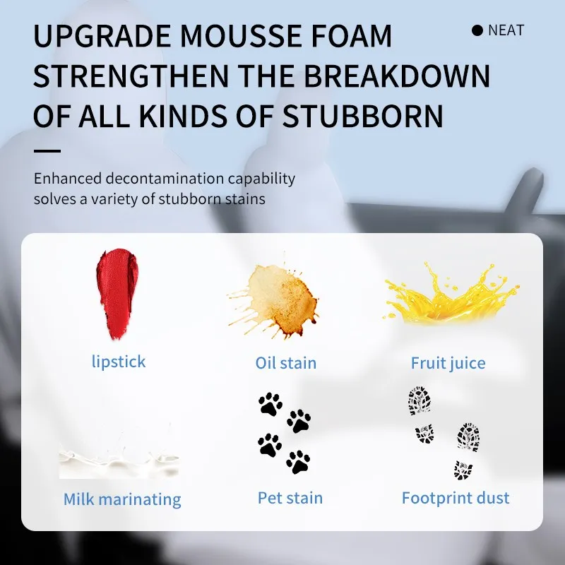 1、Fast and Effective: Compared to traditional car cleaning sprays, our foam cleaner for cars and houses offers enhanced adsorption capacity, swiftly lifting and separating dirt particles and stains deeply embedded within the carpet and upholstery fabric. Its foaming action ensures a rapid and thorough clean. The particles rise to the surface after using the car upholstery cleaner, allowing for easy removal by simply wiping the stain with a microfiber cloth.