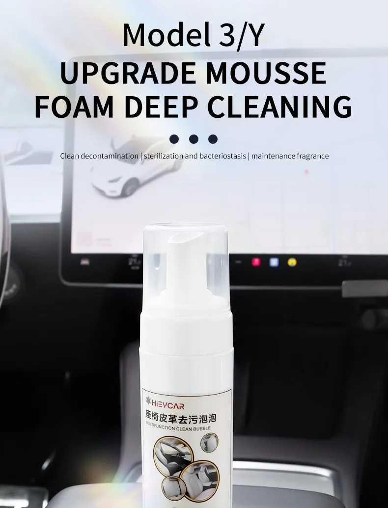 Multi-Purpose Foam Cleaner Car Interior Leather Seat Panel Cleaning Decontamination Cleaning Foam Spray for Tesla Model 3/Y/S/X