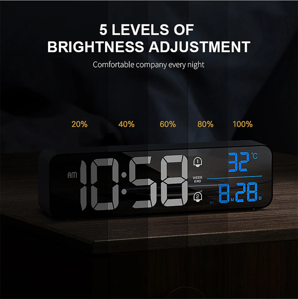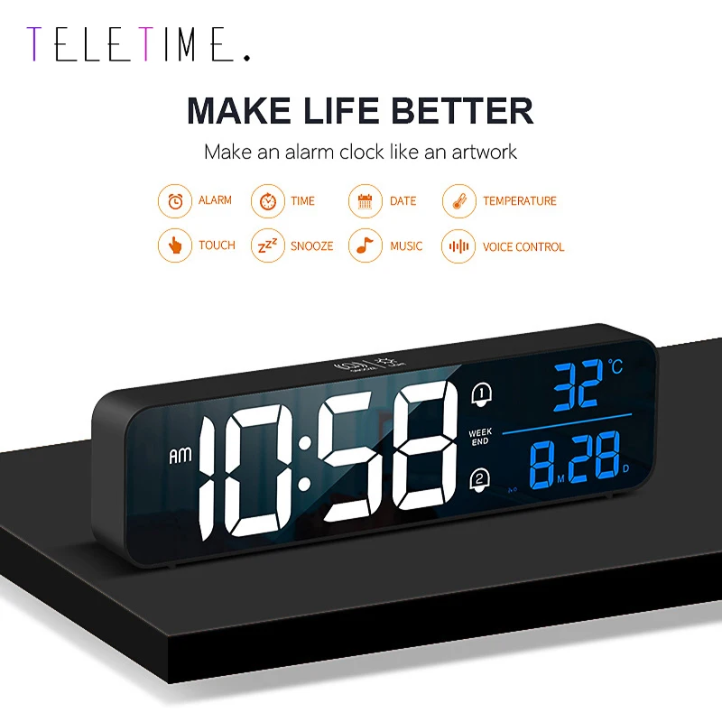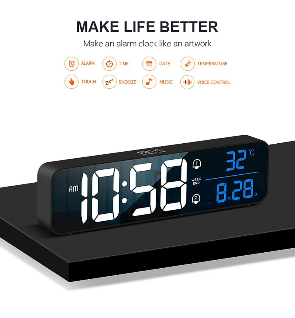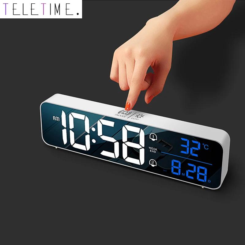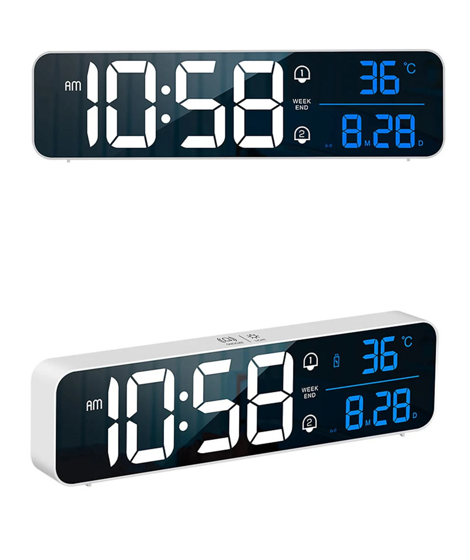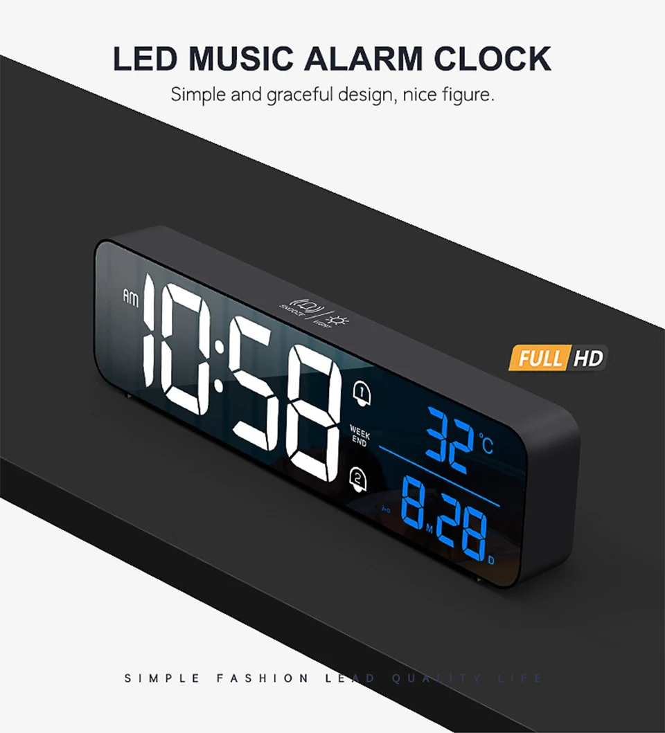 Music LED Digital Alarm Clock Temperature Date Display Desktop Mirror Clocks Rechargeable Electronic Clock Home Table Decoration