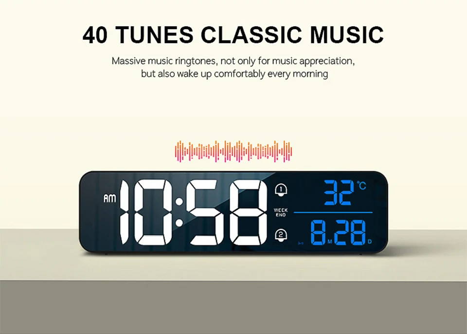 6. 40 pieces of alarm music can be selected.