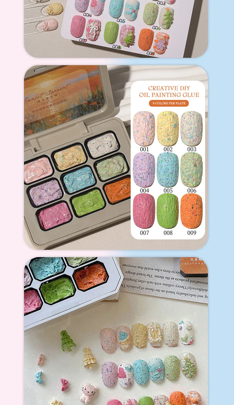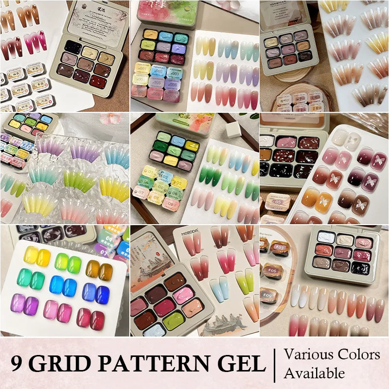 Nail Art Glue 9-grid Color Painting Glue High Saturation Thick Gradient Nail Polish Glue for Nails Salon Manicure Tools