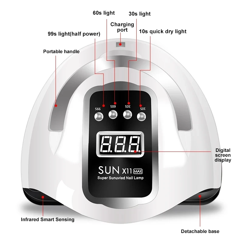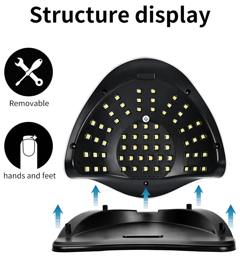 1.Adopting UV/LED dual light source induction, imitating sunlight, not hurting hands, 180 degree uniform irradiation without dead ends, easy nail art.