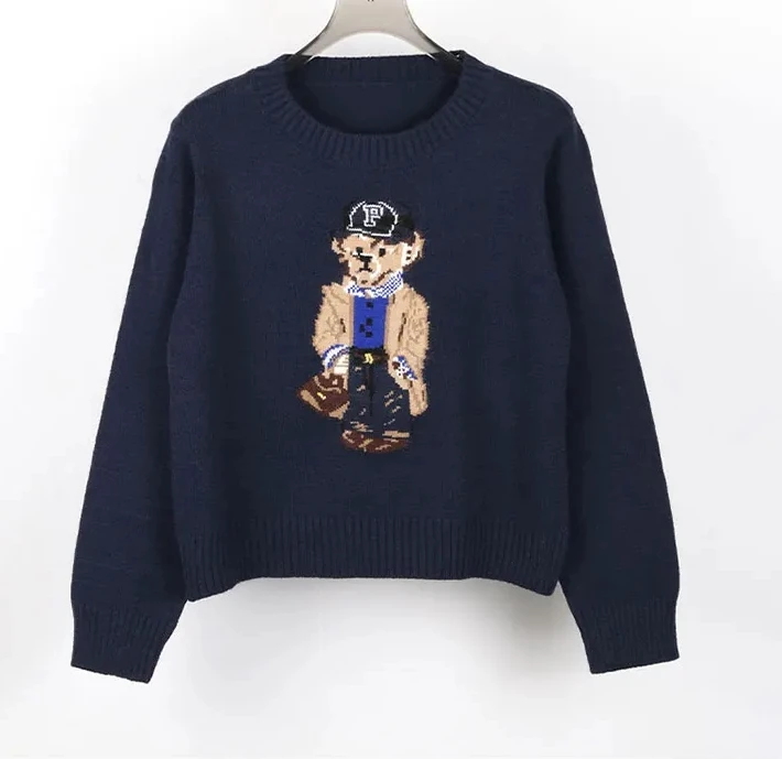 New 2024 Autumn Winter Pullover Sweater Women Cashmere Knitwear Tops Bear Print Warm Pullovers Korean Fashion Chic Woman Clothes