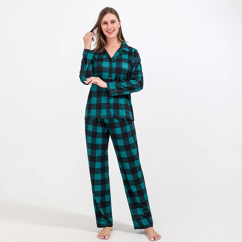 New 2025 Plaid Print Family Christmas Pajamas Set Parent-child Matching Clothes Button Shirt 2 Pieces Suit Loungewear Xmas Look