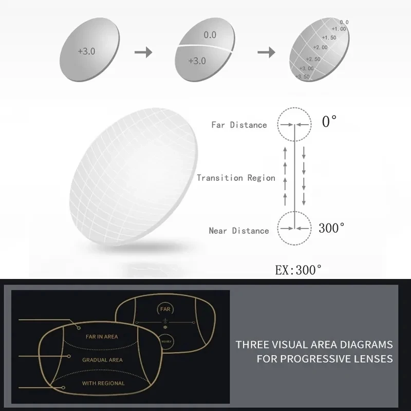 New 3 in 1 Progressive Multifocal Reading Glasses For Women Eyeglasses Easy To Look Far and Near +1.0 To +4.0