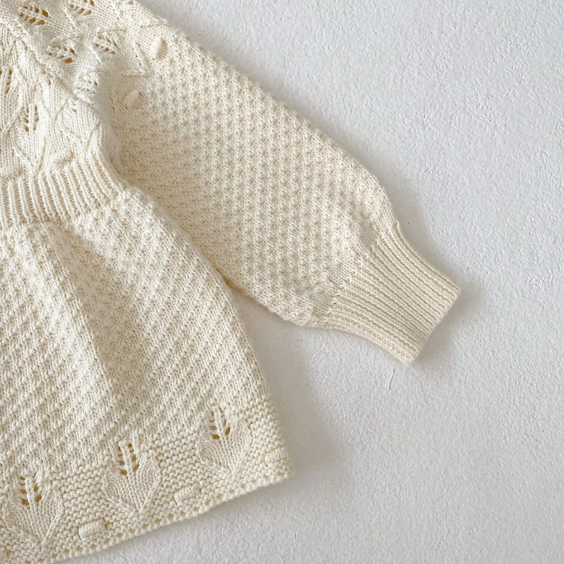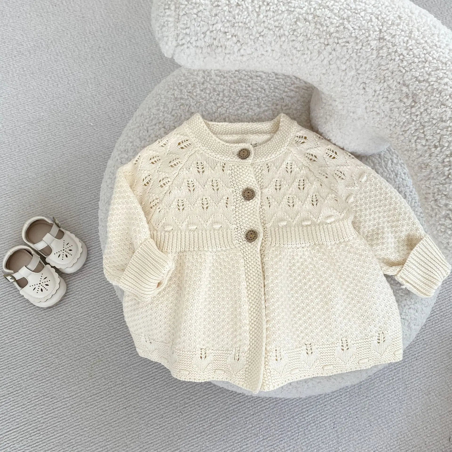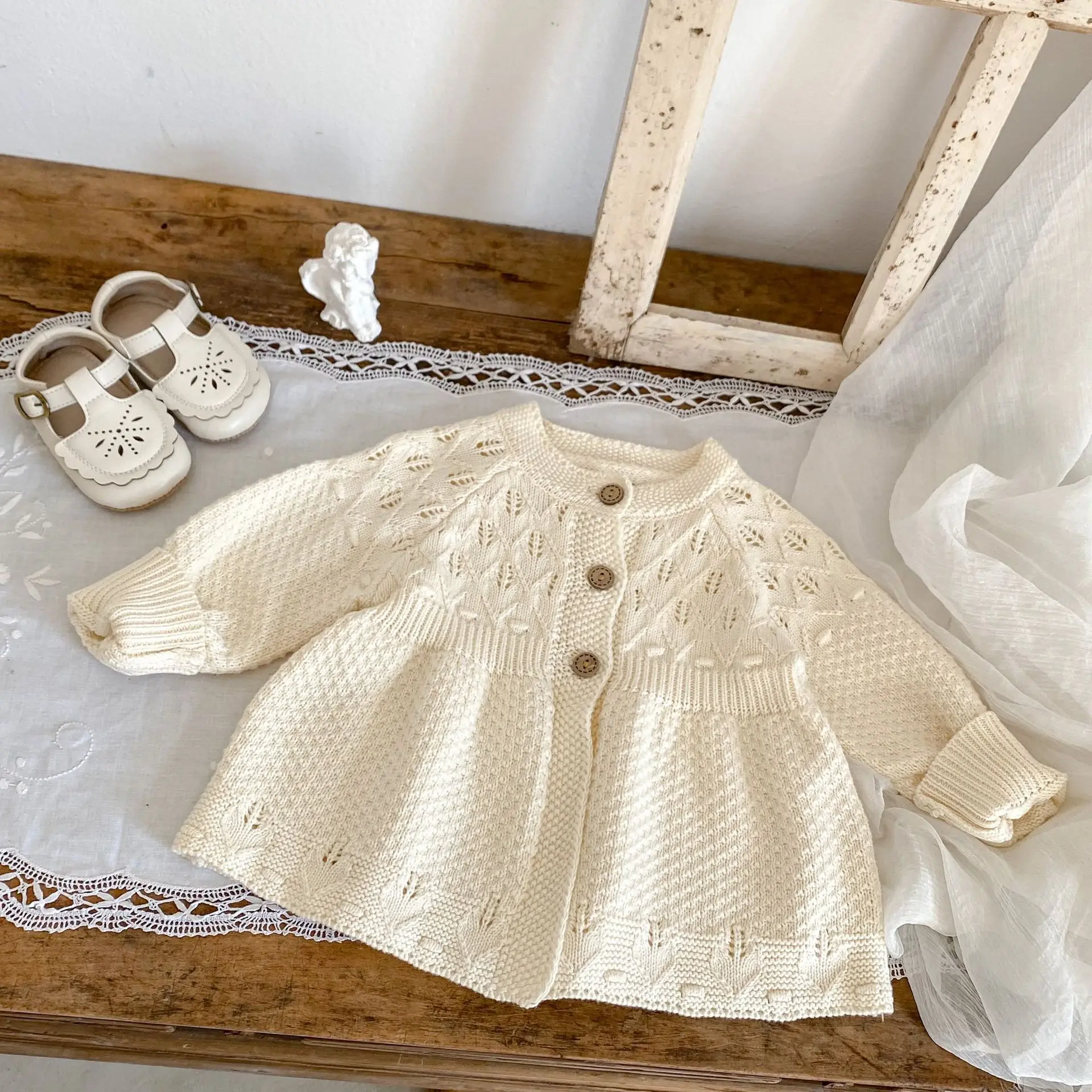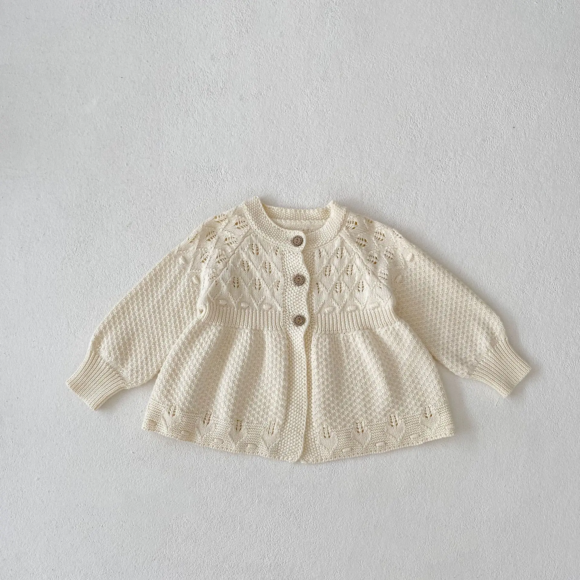 New autumn clothing for infants aged 0-3, sweaters for baby girls, hollow knitted cardigans, and A-line versatile jack