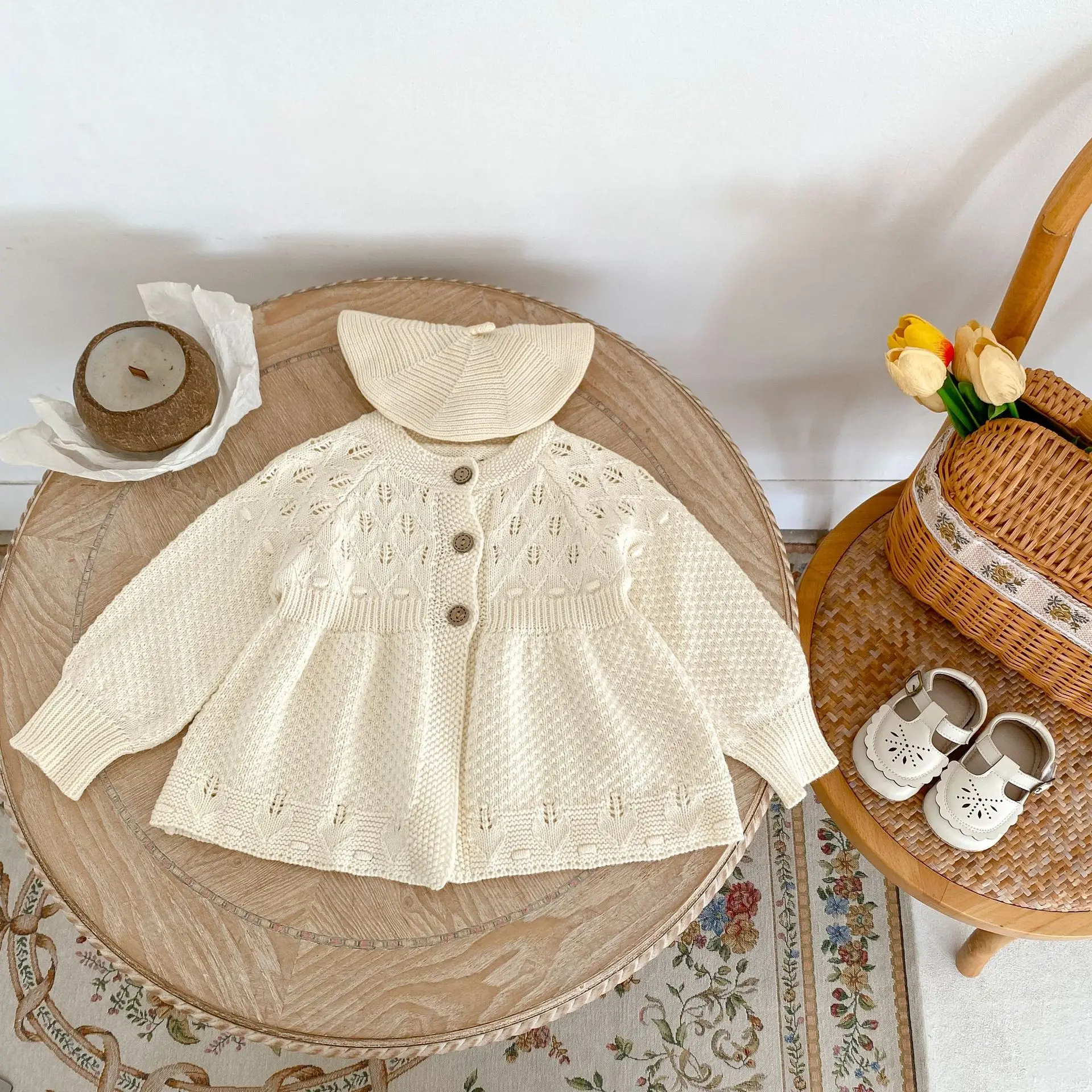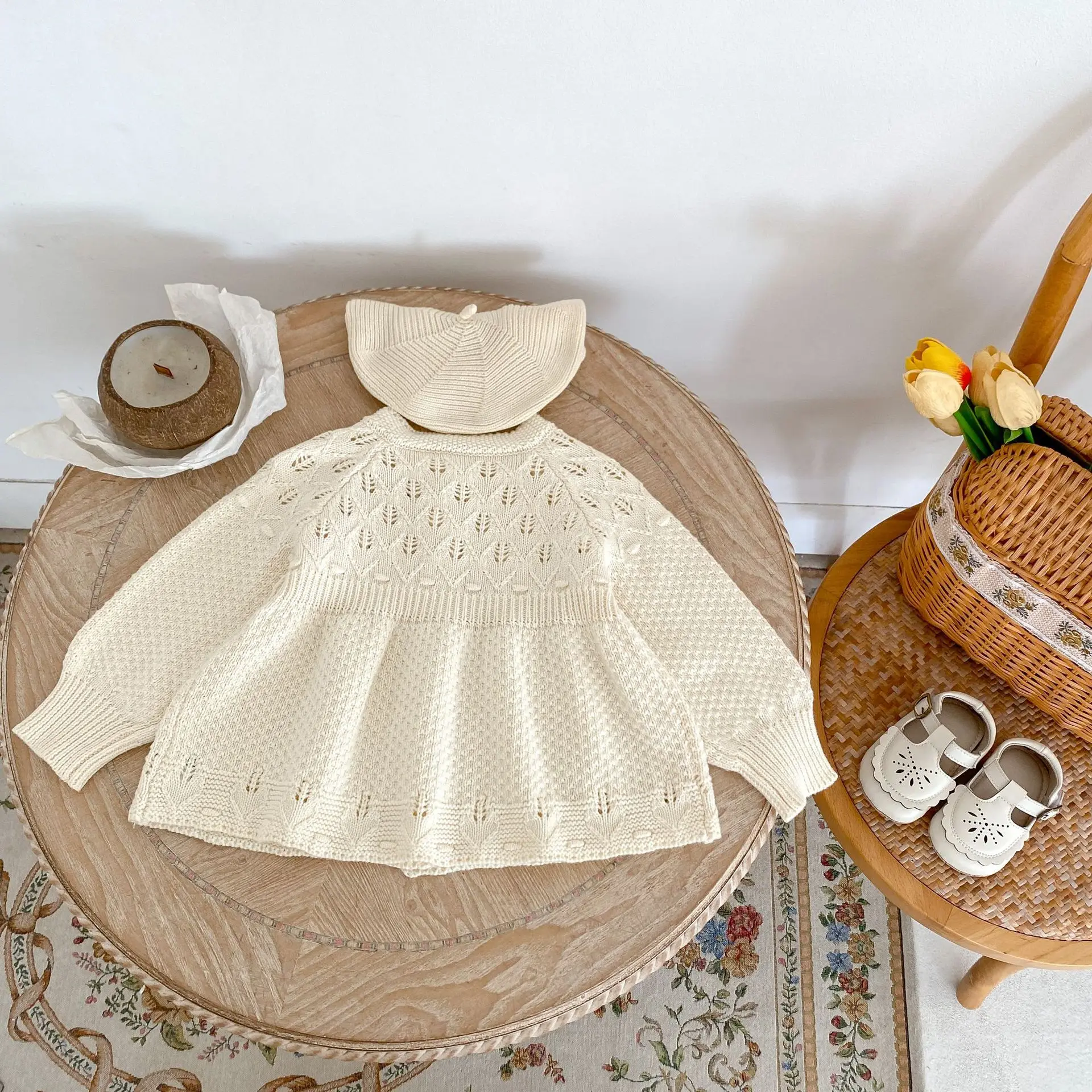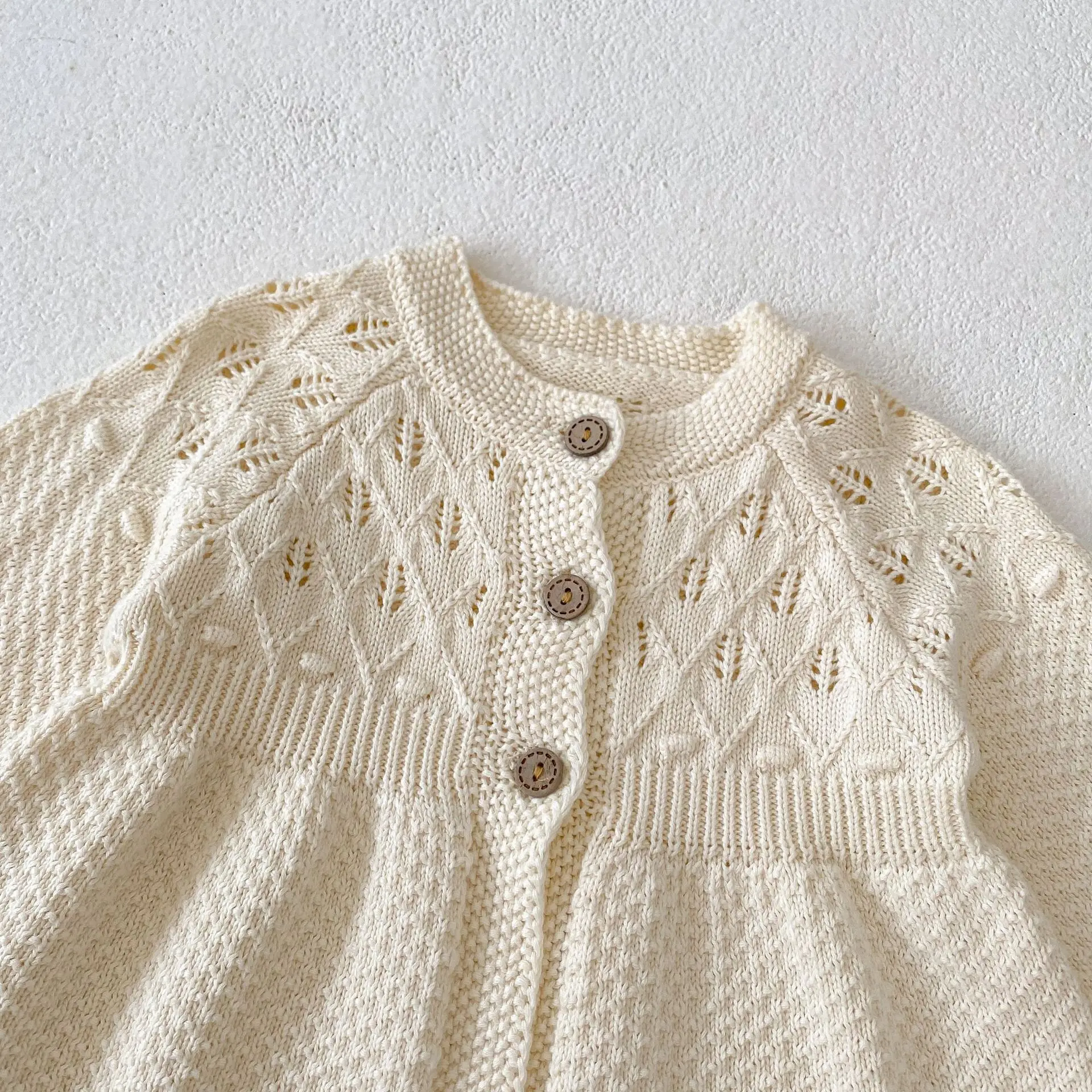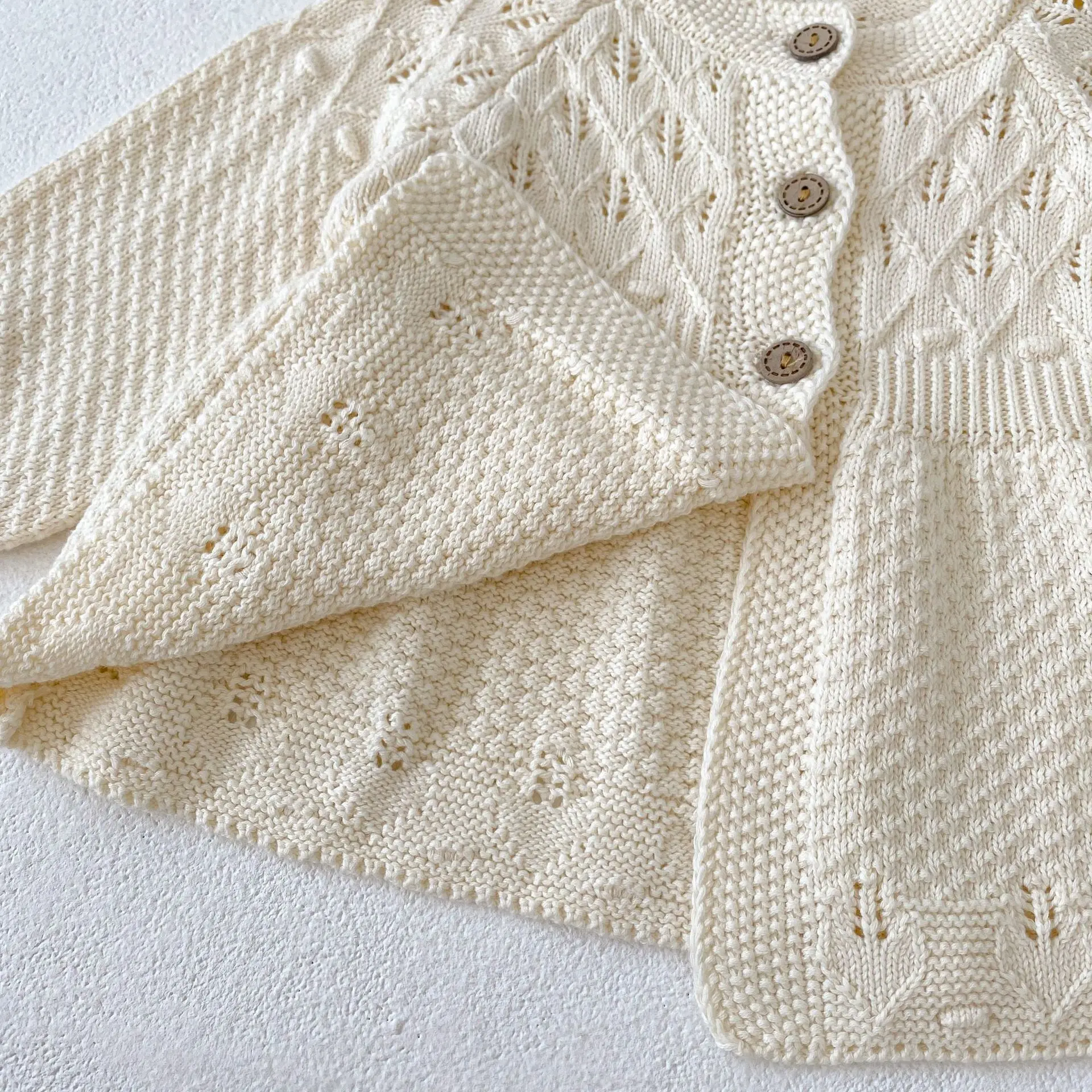 New autumn clothing for infants aged 0-3, sweaters for baby girls, hollow knitted cardigans, and A-line versatile jack