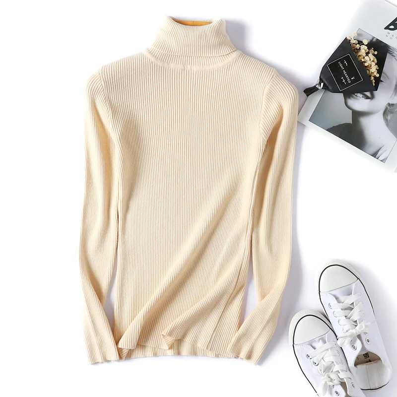 New Autumn Winter Women Knitted Turtleneck Sweater Casual Soft Polo-neck Jumper Fashion Slim Elasticity Solid Ribbed Pullovers