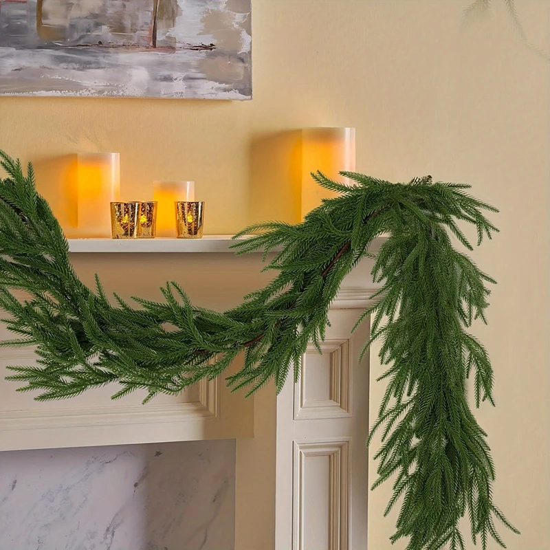 1.NORFOLK PINE GARLAND: These Norfolk pine garlands bring you the feeling of fresh and elegant, they are beautiful and realistic. Brighten your home with these Norfolk pine garlands. They can work harmoniously with any decor and style.