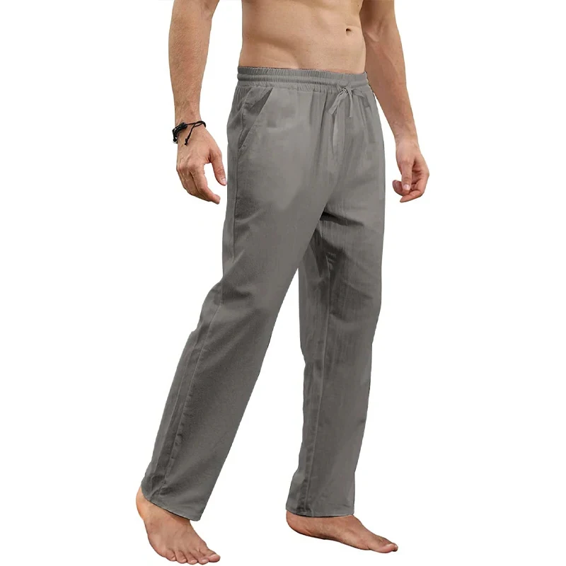 New Cotton Pants Loose Casual Pants Summer Breathable Solid Color Drawstring Jogger Lightweight Trousers