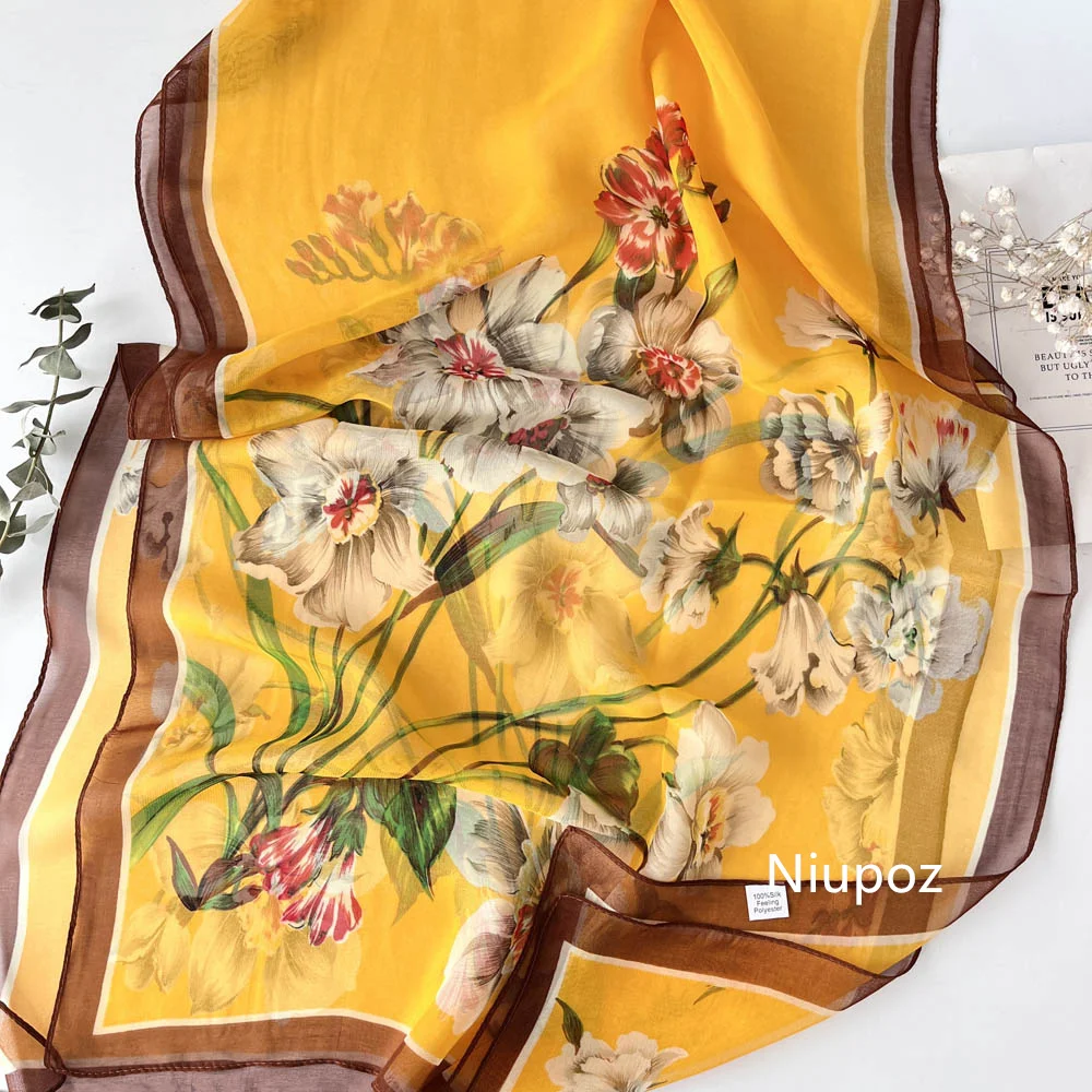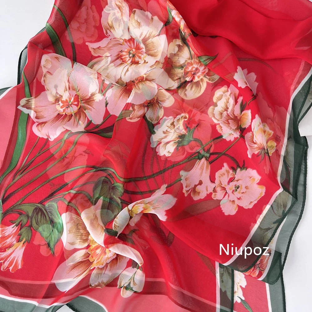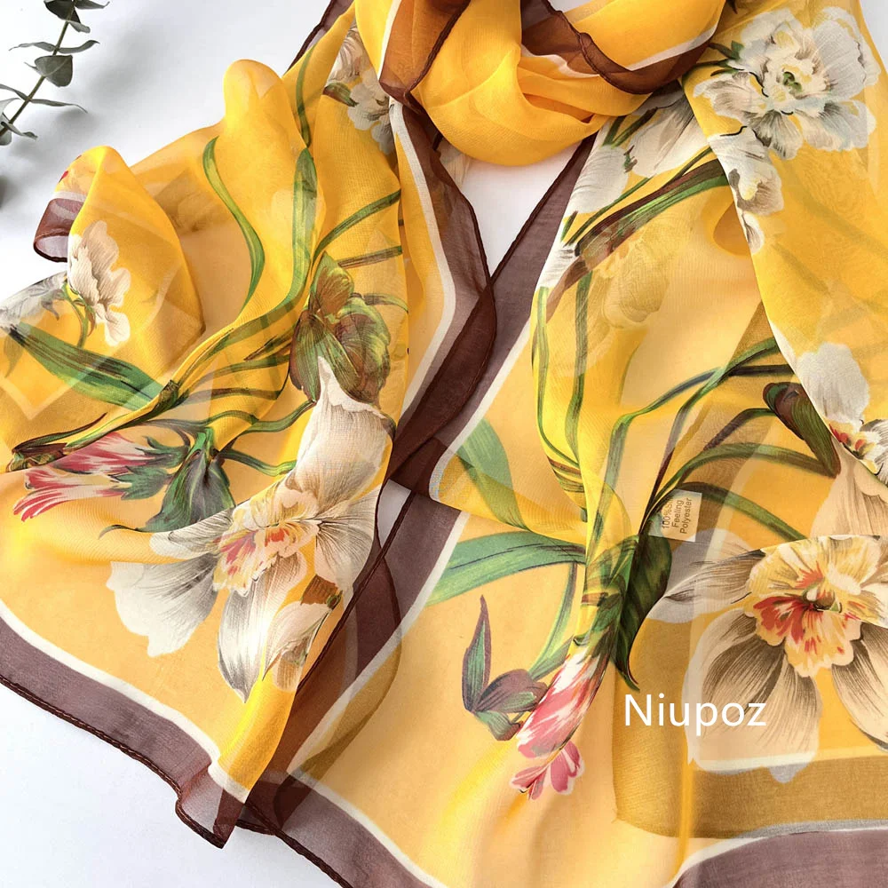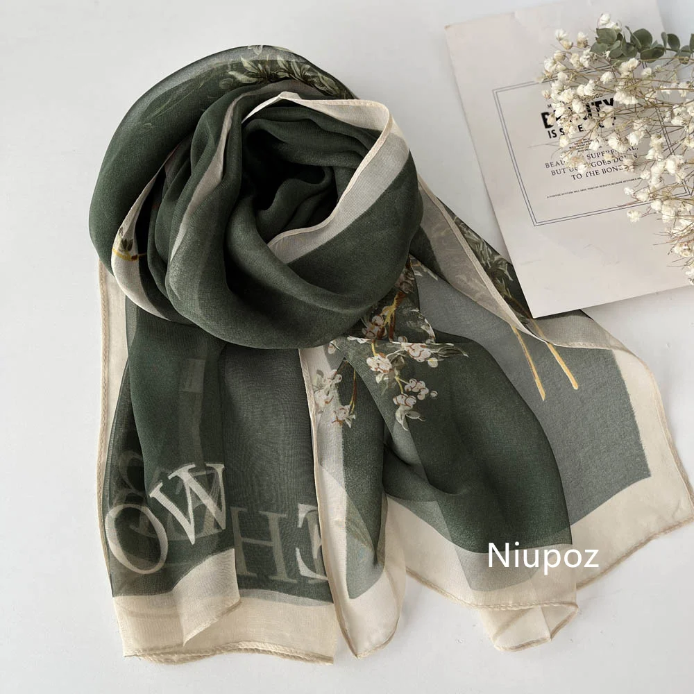 New Design Green Women Elegant Flower Print Chiffon Georgette Bandana Scarf Summer Beach Sunscreen Thin Travel Shawl