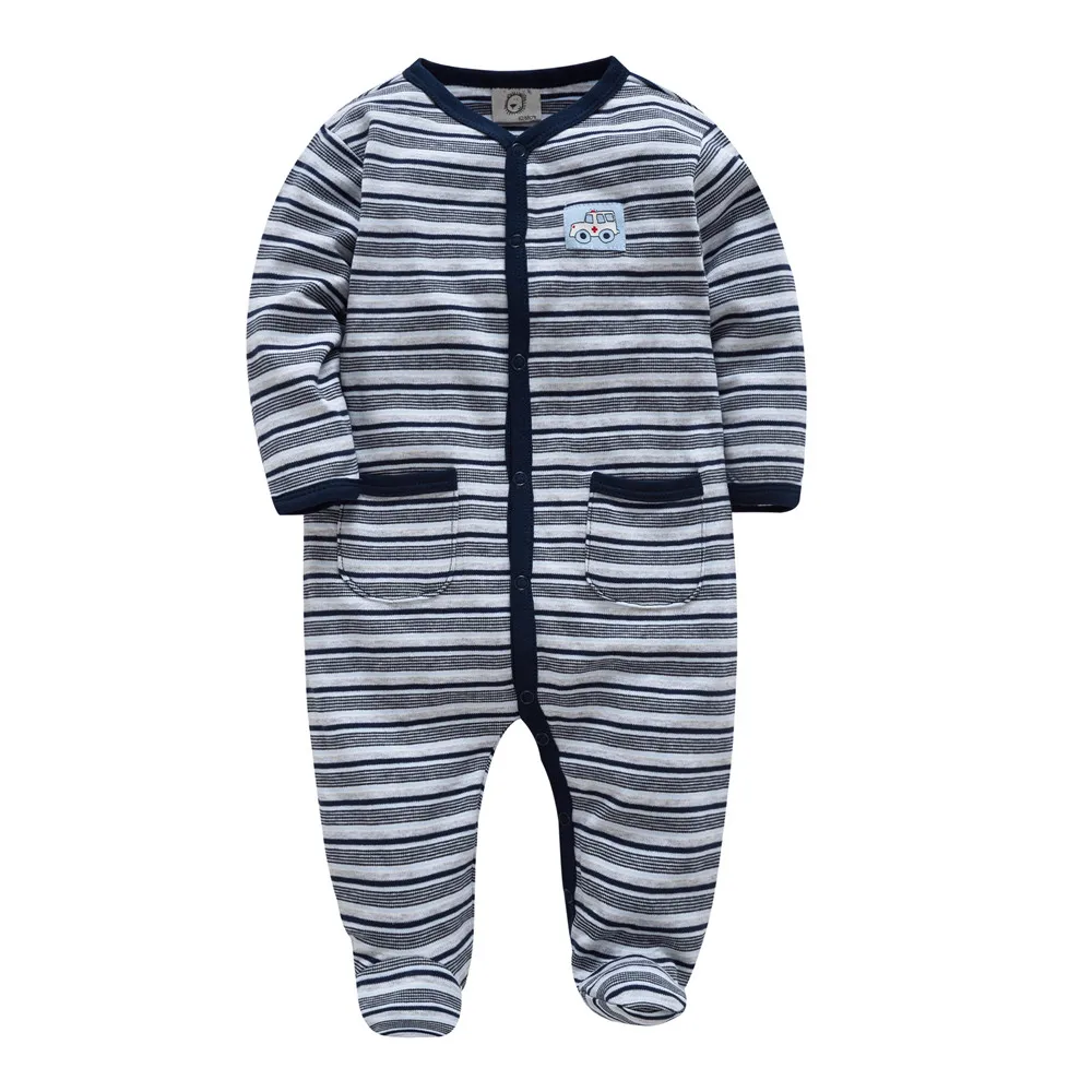New Fall Winter Newborn Baby Clothes Cotton Striped Cartoon Print Baby Boy Jumpsuit Long Sleeve ropa de bebe Clothing