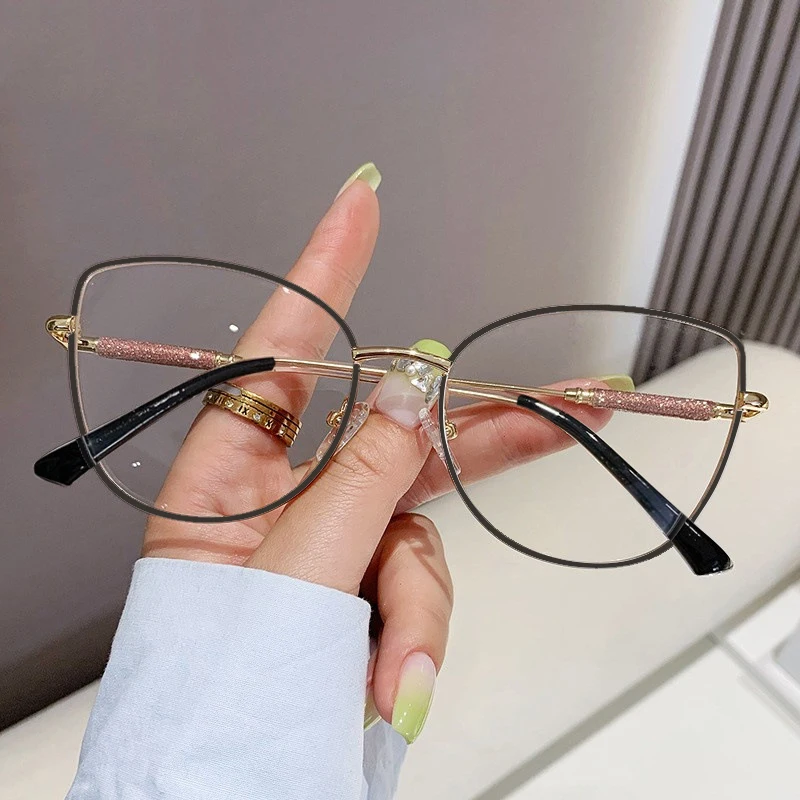 New Fashion Brand Design Cat Eye Photochromism Prescription Reading Glasses Women Anti Blue Light Frame Clear Hyperopia Eyewear