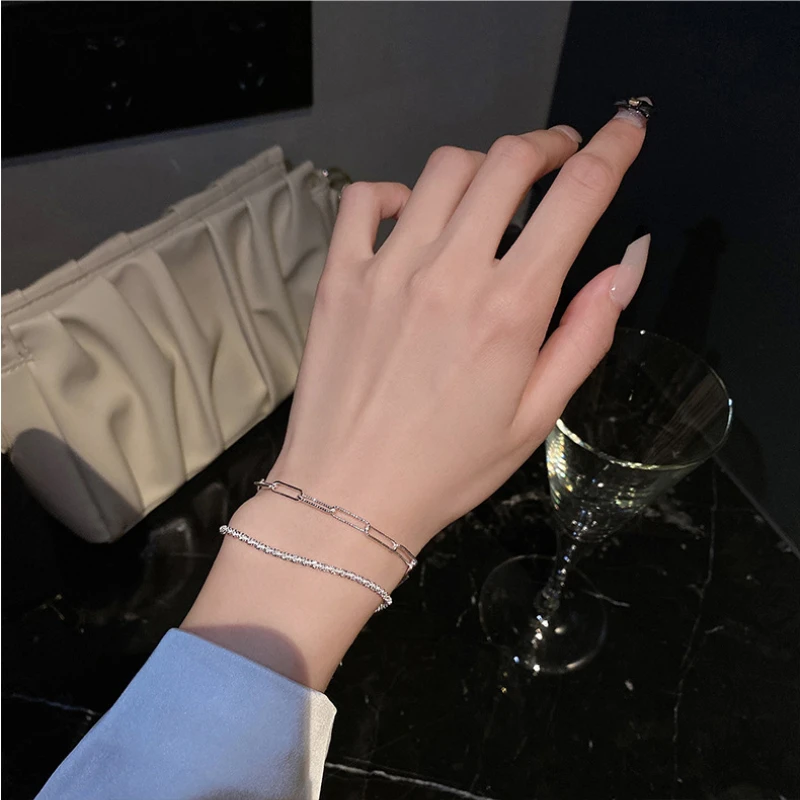 New Fashion Silver Colour Double Layer Bracelet Sparkling Exquisite Simple Women Bracelet Fine Jewelry Accessories