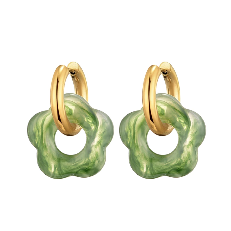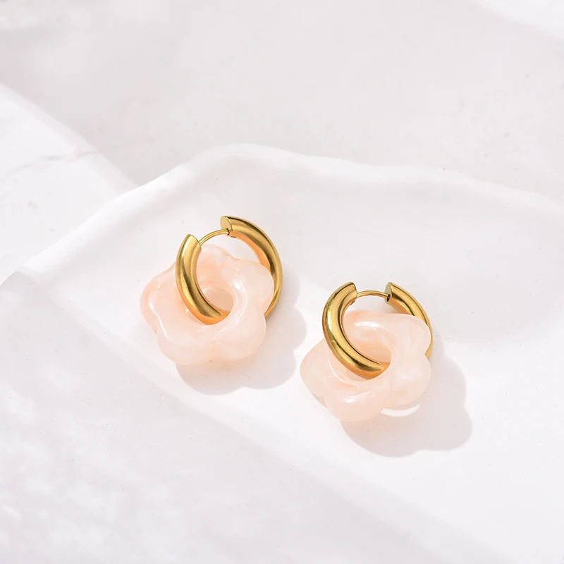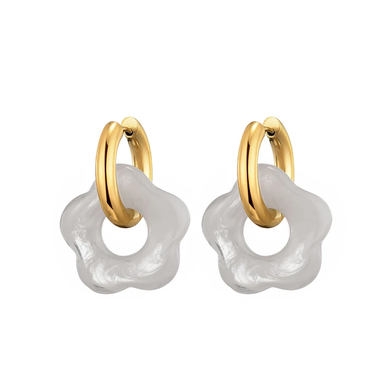New Flower Resin Acrylic Drop Earrings Gold Color Round Circle Stainless Steel Ear Buckle Hoop Earrings For Women Jewelry Gift