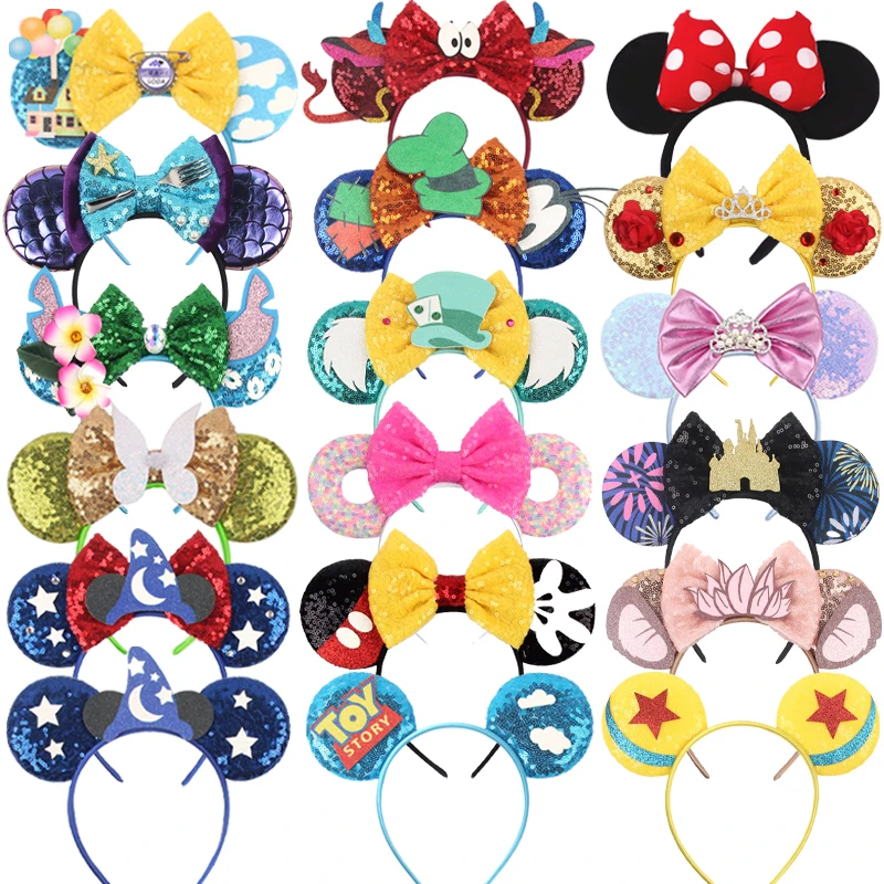New Hot Sales Cosplay Mouse Ears Headband 5 Inches Sequins Big Bow Hair Band Kids Party DIY Headwear Hair Accessories Girls Gift