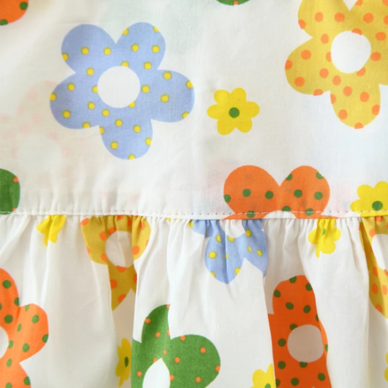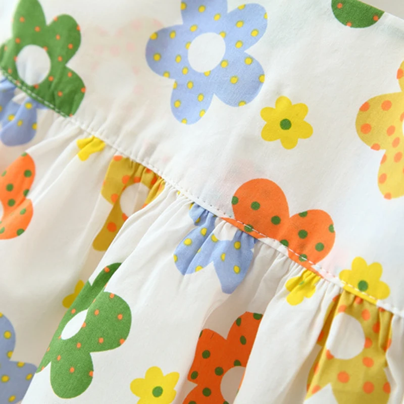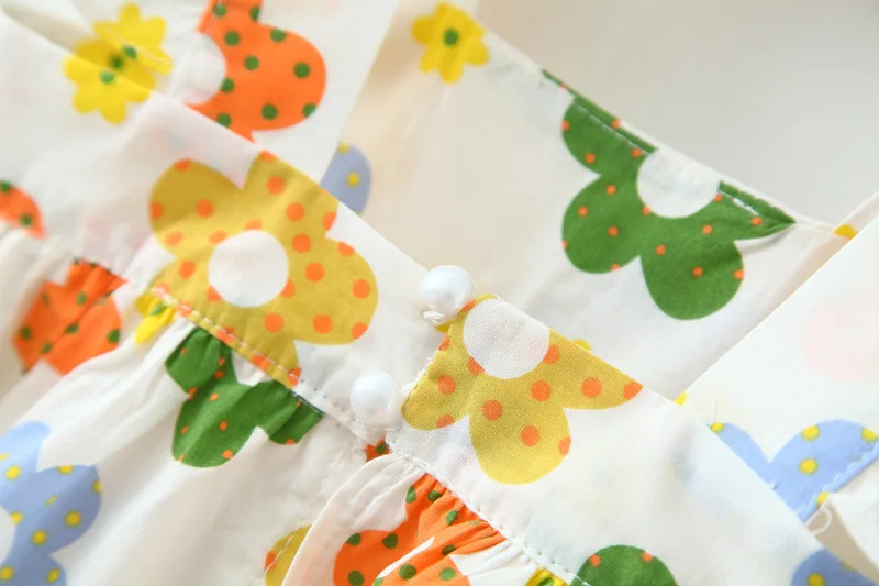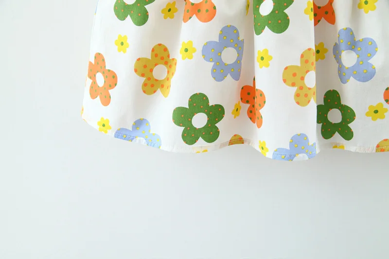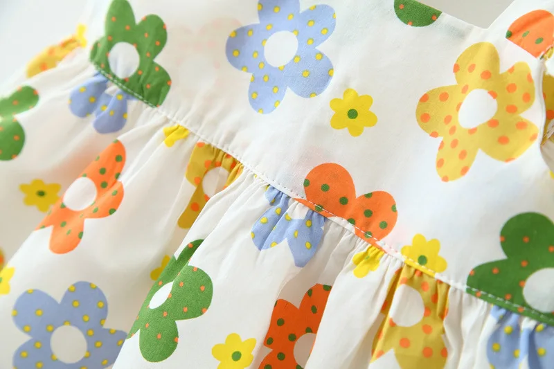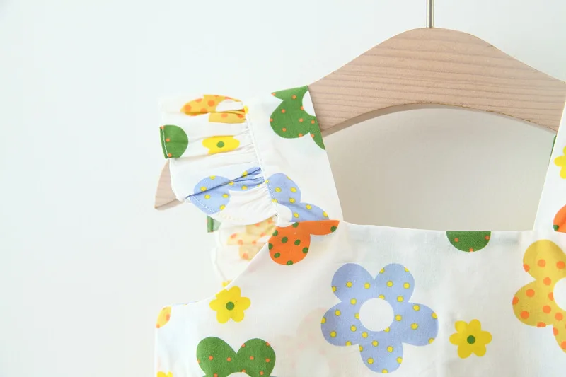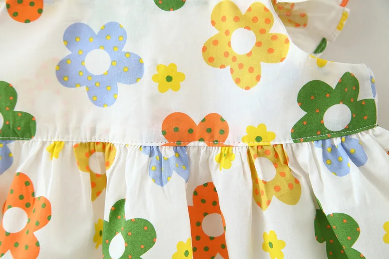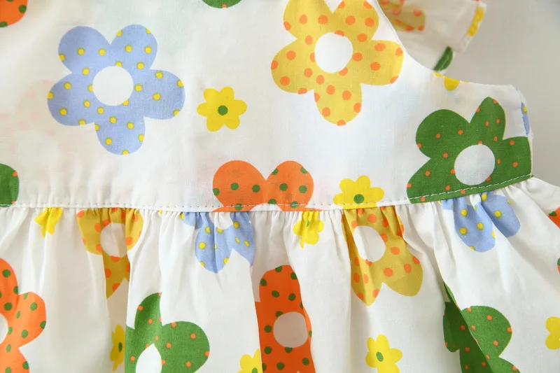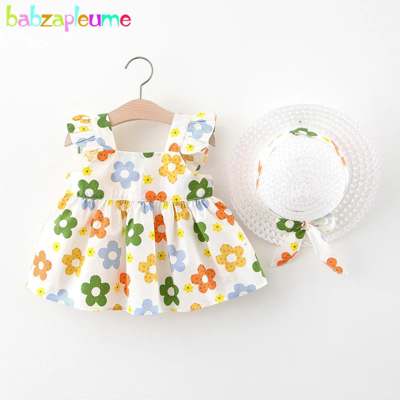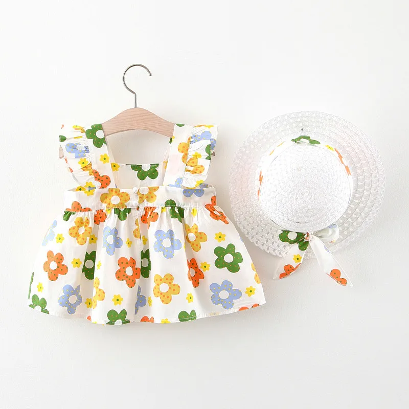 New In Baby Girl Summer Outfits Korean Cute Flowers Sleeveless Cotton Print Kids Dresses+Sunhat Princess Dress For Kids BC015