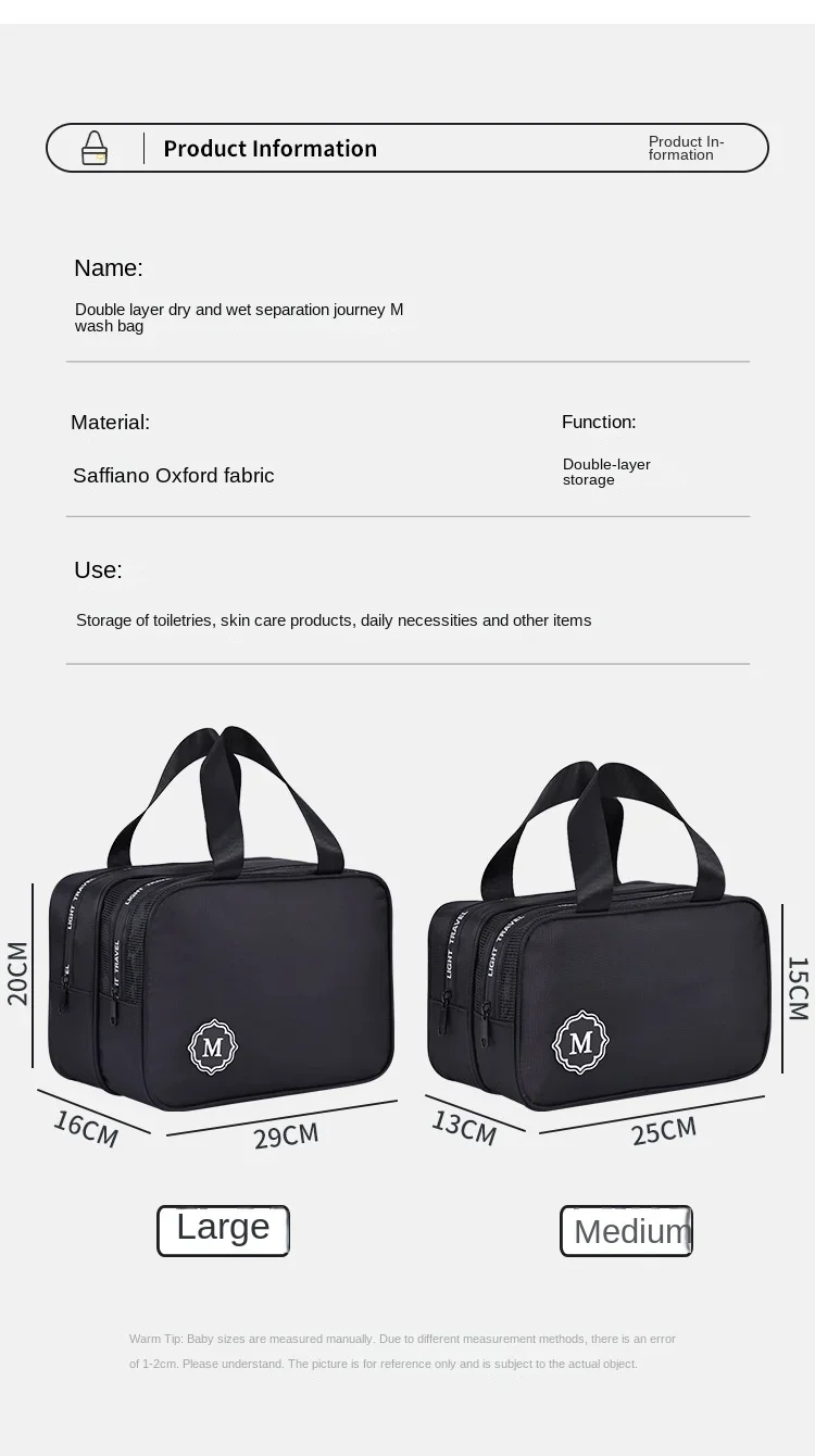New Large capacity makeup bag dry wet separation double layer toiletry bag travel essential portable Cosmetics organizer