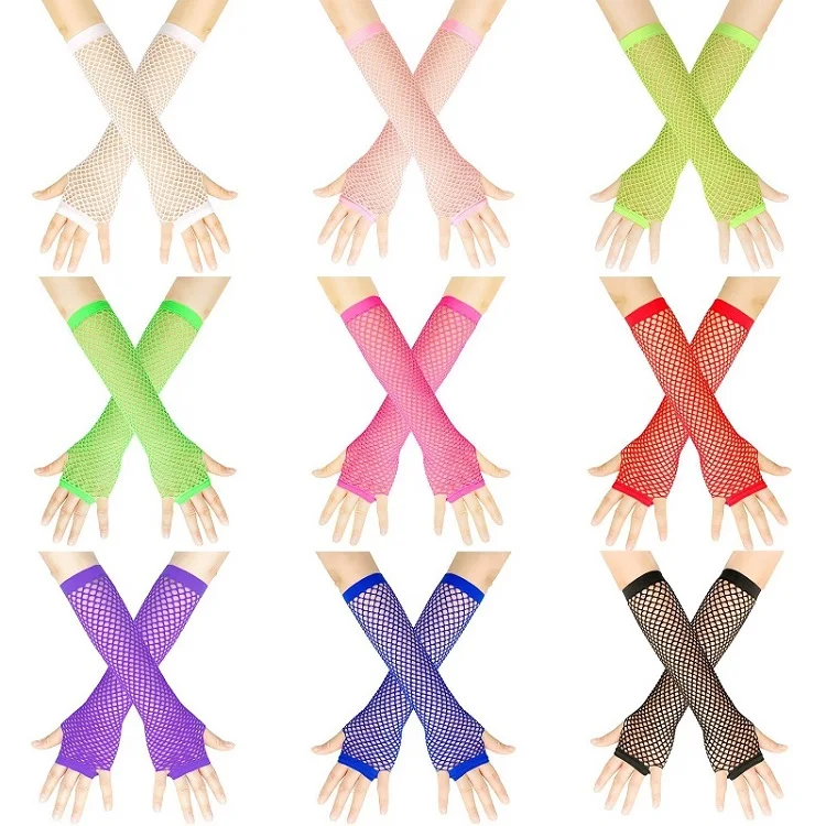 New Mesh Gloves Neon Fishnet Gloves Mittens Black Red Sheer Wear Fancy Dress for Womens Sexy Girls Punk Goth Dance Glove