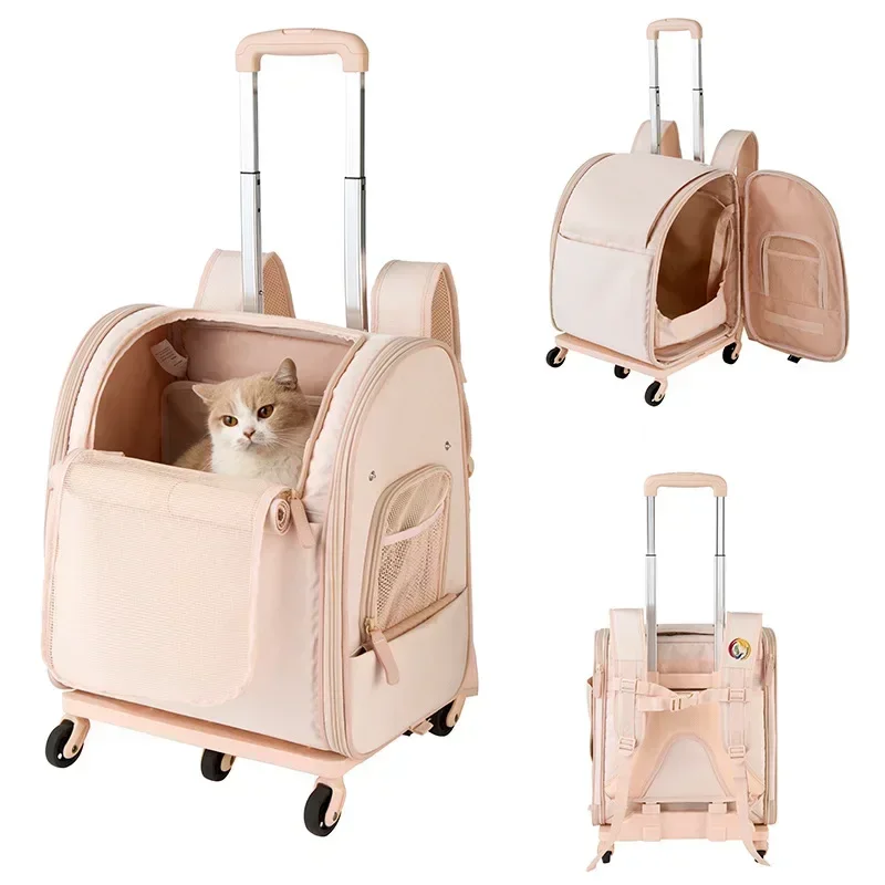 New Pet Trolley Bag Waterproof Oxford Cloth Cat Backpack Portable Foldable Lightweight Pet Trolley Case Dog Stroller Carrier