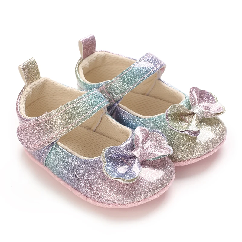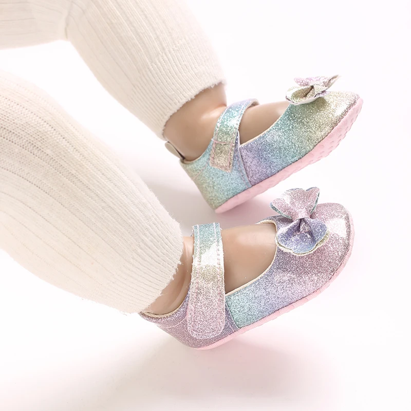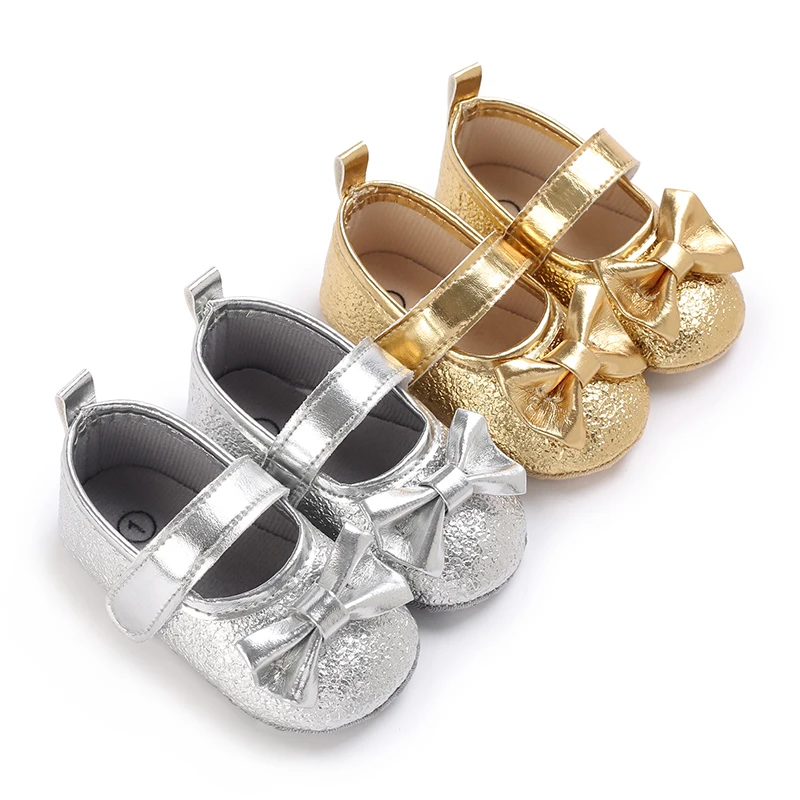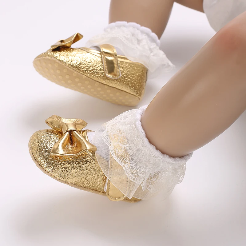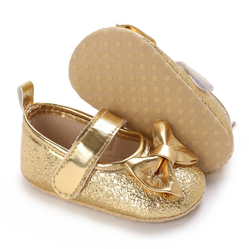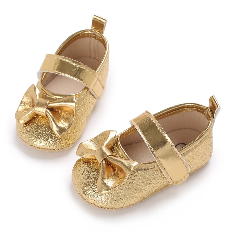 NEW Princess Shoes 0-18M Newborn Casual Shoes Baby Bow Non slip Cloth Bottom Flat Bottom PU Newborn Bow Decoration Mary Janes