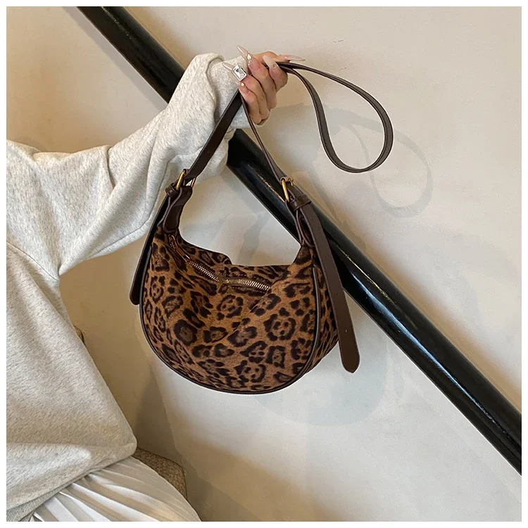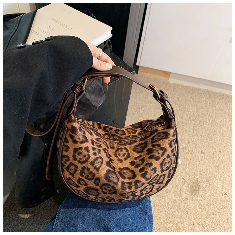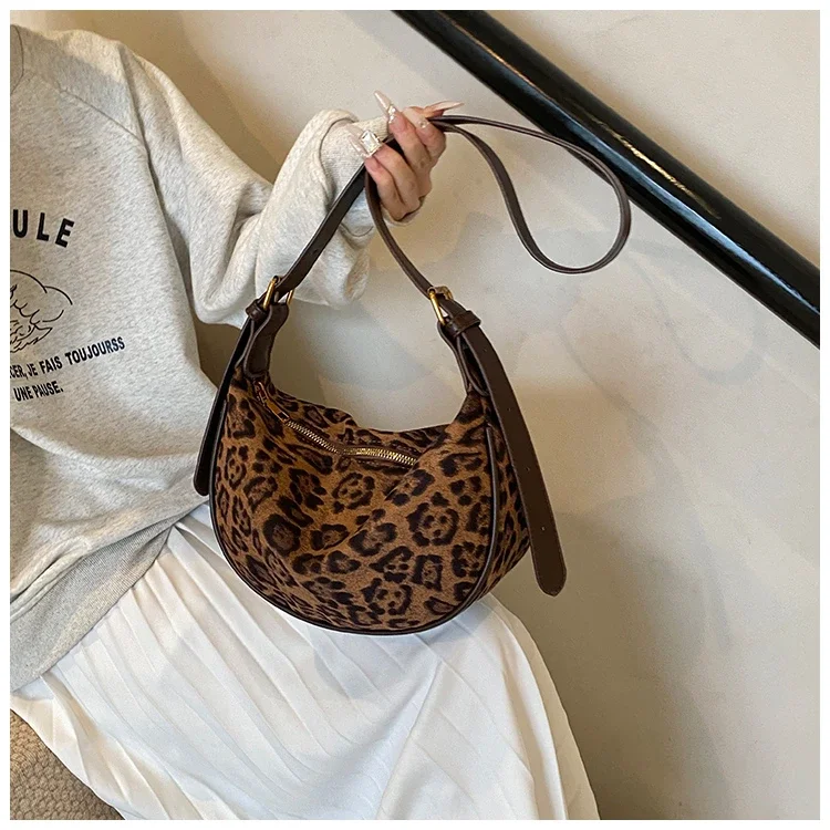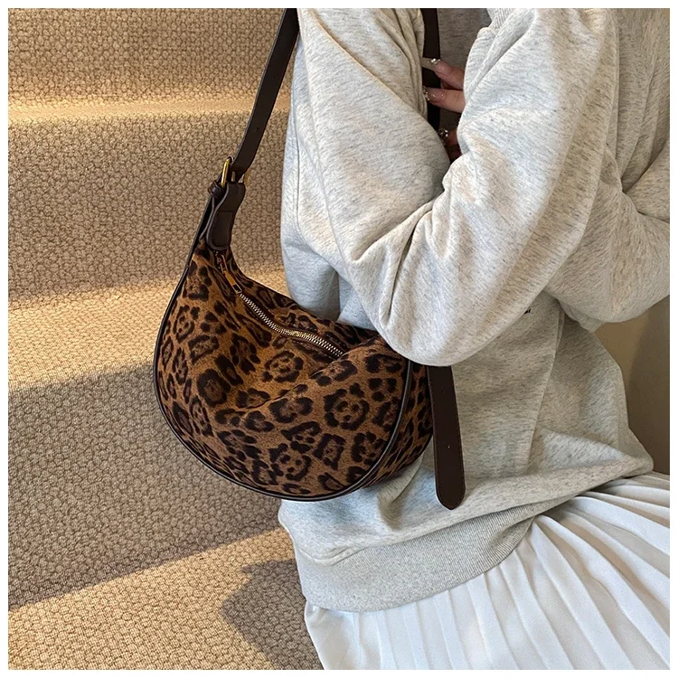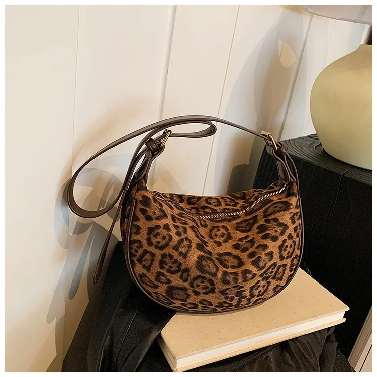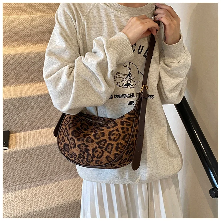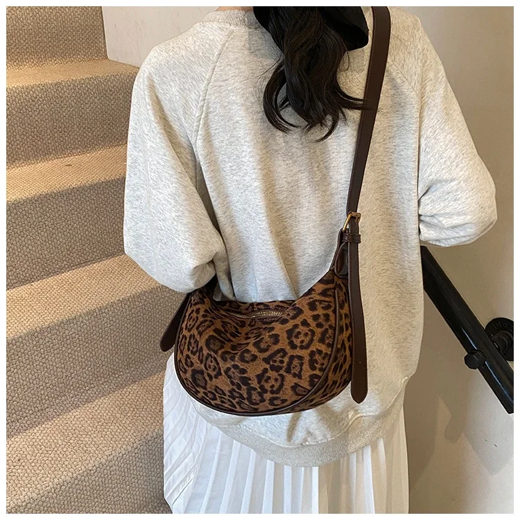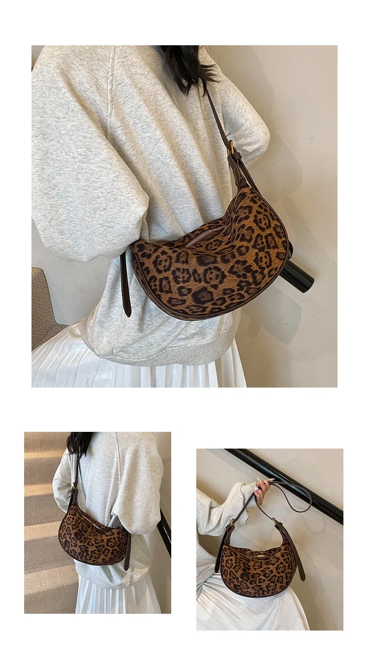 New Simple Leopard Print Zipper Nylon Youth Crossbody Bags 2025 High Quality Large Capacity Casual Commute Shoulder Bags