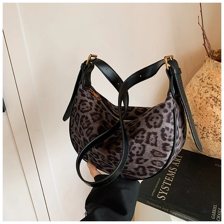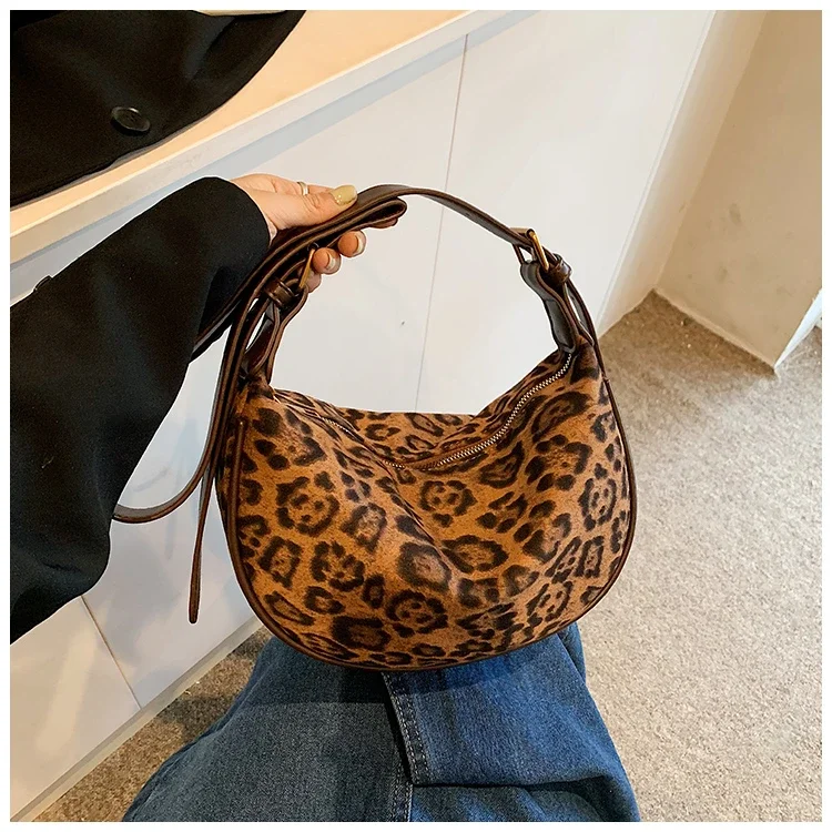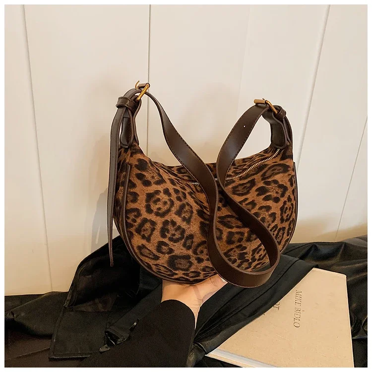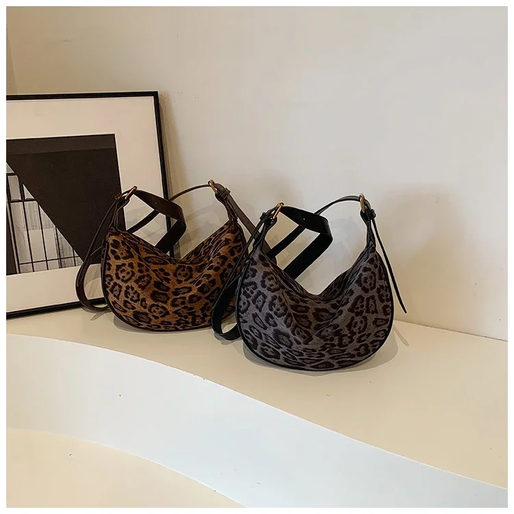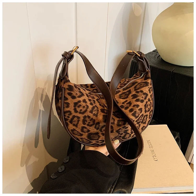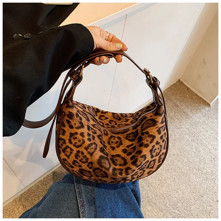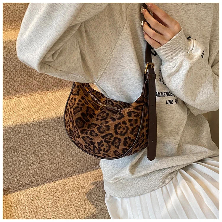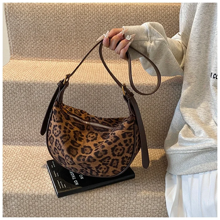 New Simple Leopard Print Zipper Nylon Youth Crossbody Bags 2025 High Quality Large Capacity Casual Commute Shoulder Bags