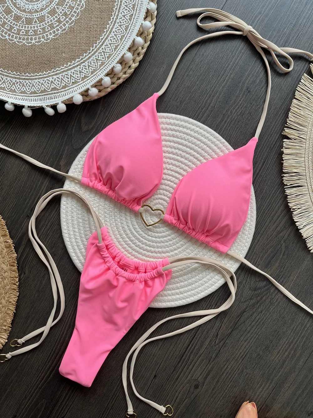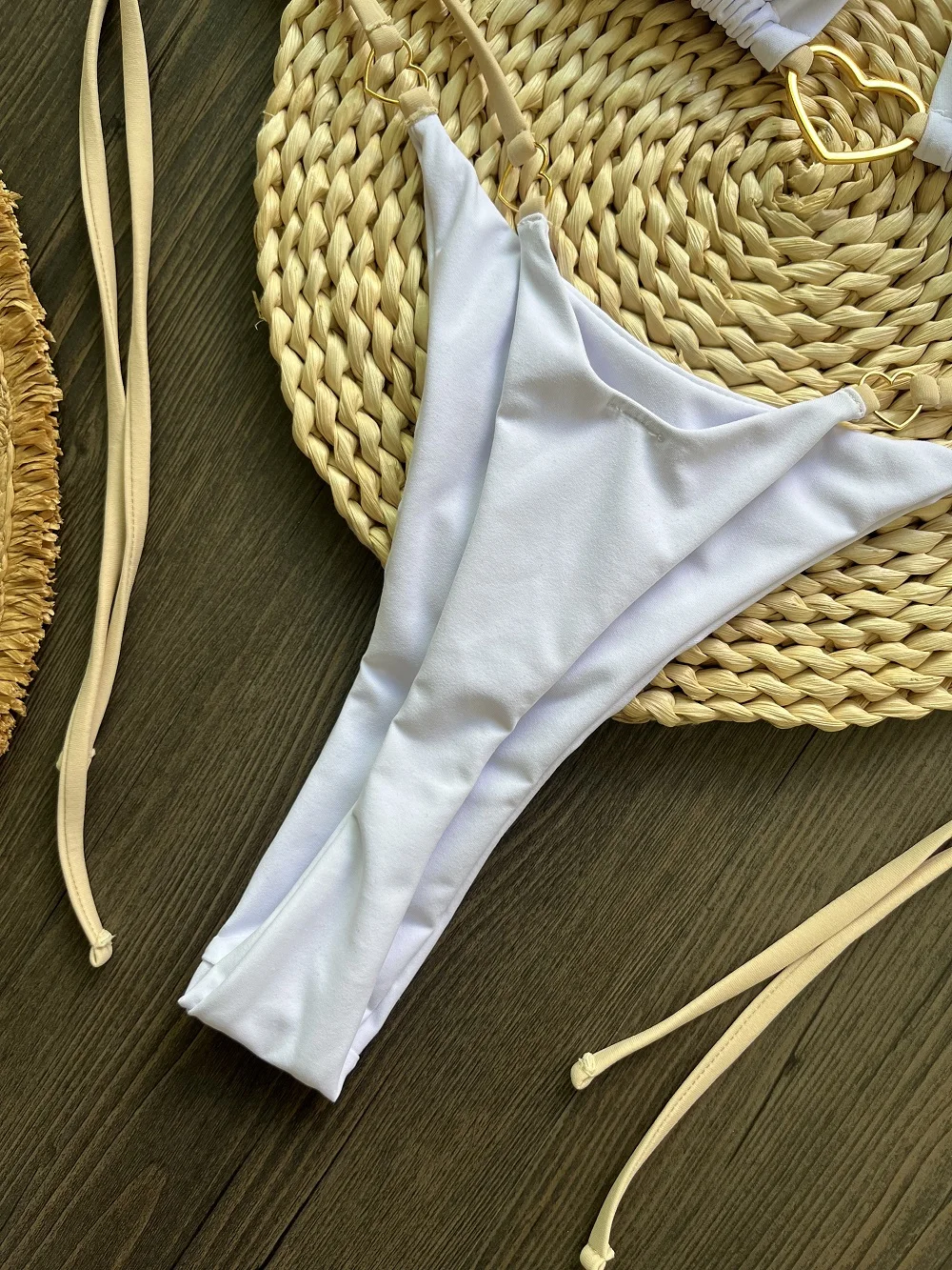 New Solid Color White Bikini Women suit Low Waist Lace-up Fashionable Swimsuit Two-piece Set