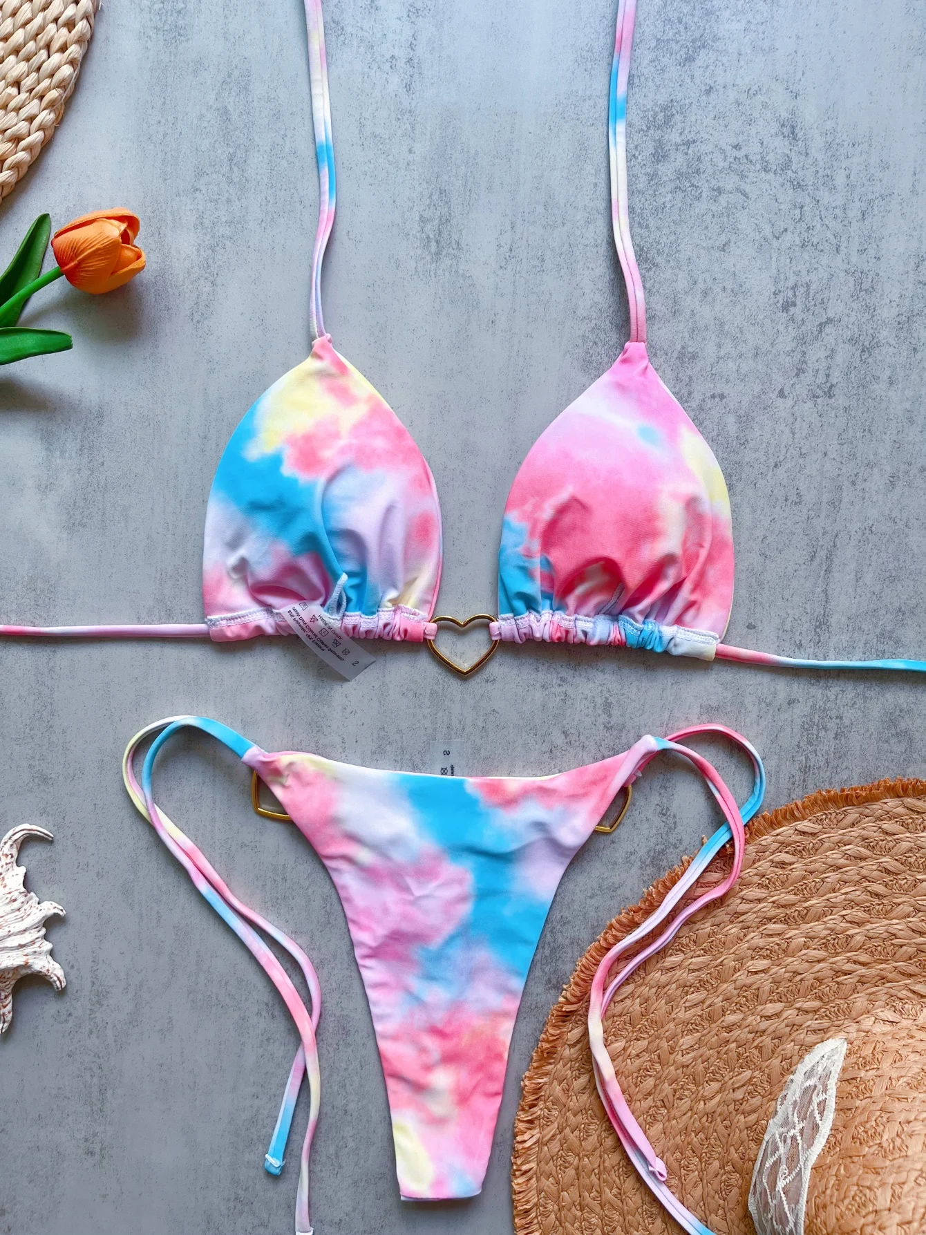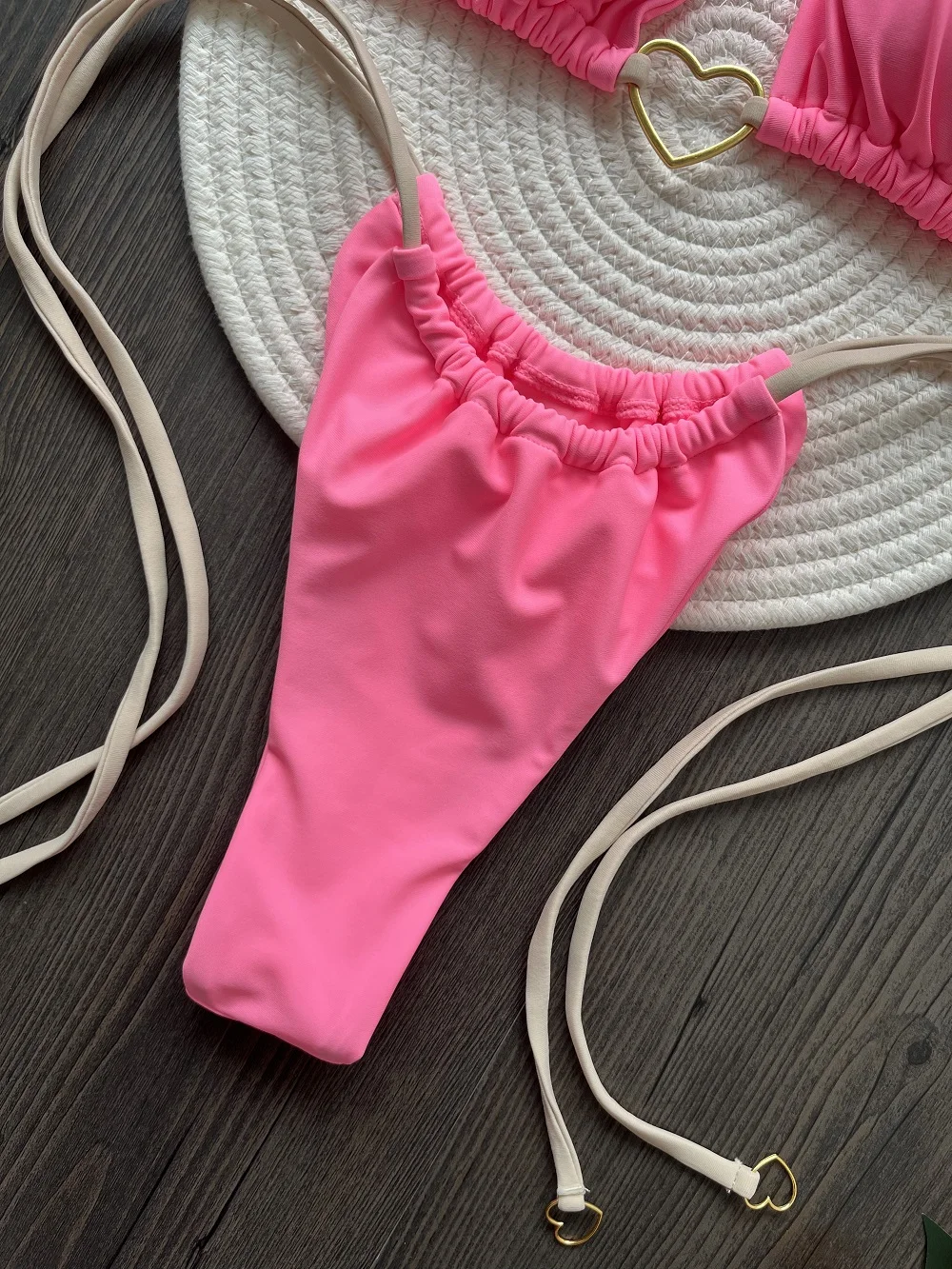 The large heart-shaped metal was really nice. The raised T-back is also good. This year's waves will make you tan in this bikini. At first, it was very cheap at 683 yen, so I bought 4 sets in total, including two S sizes and two M sizes. It would be better if the inverted triangle part in the front was smaller.