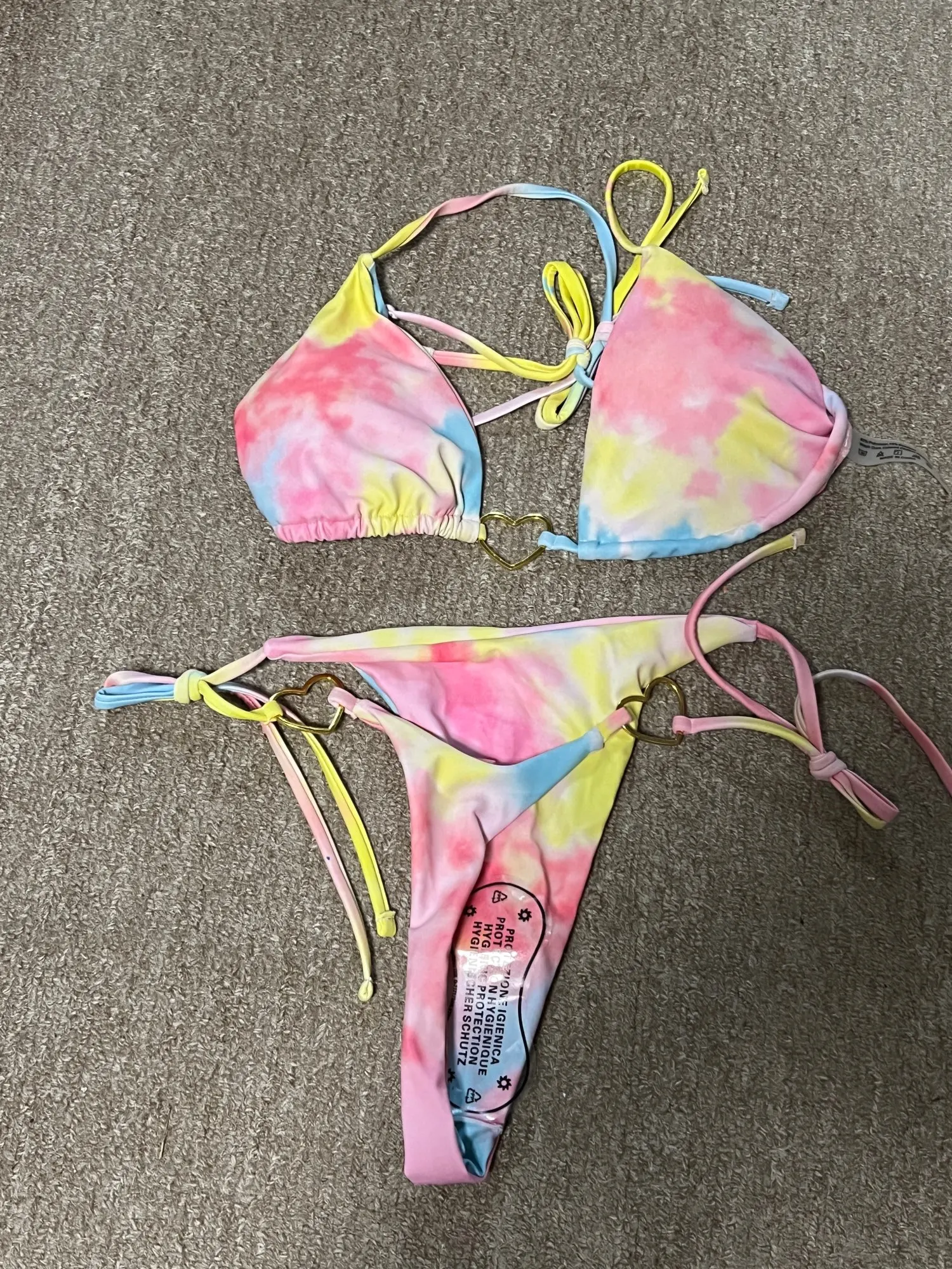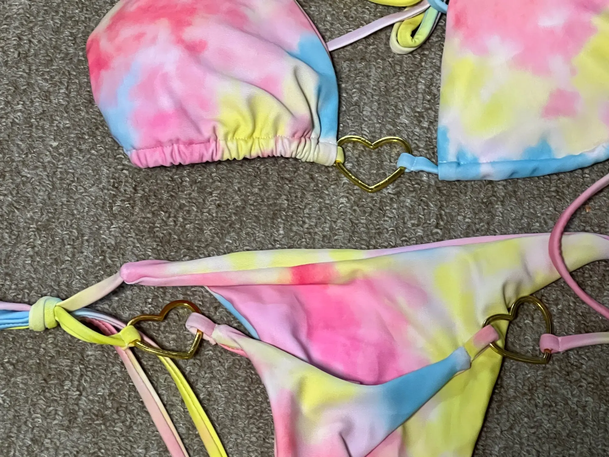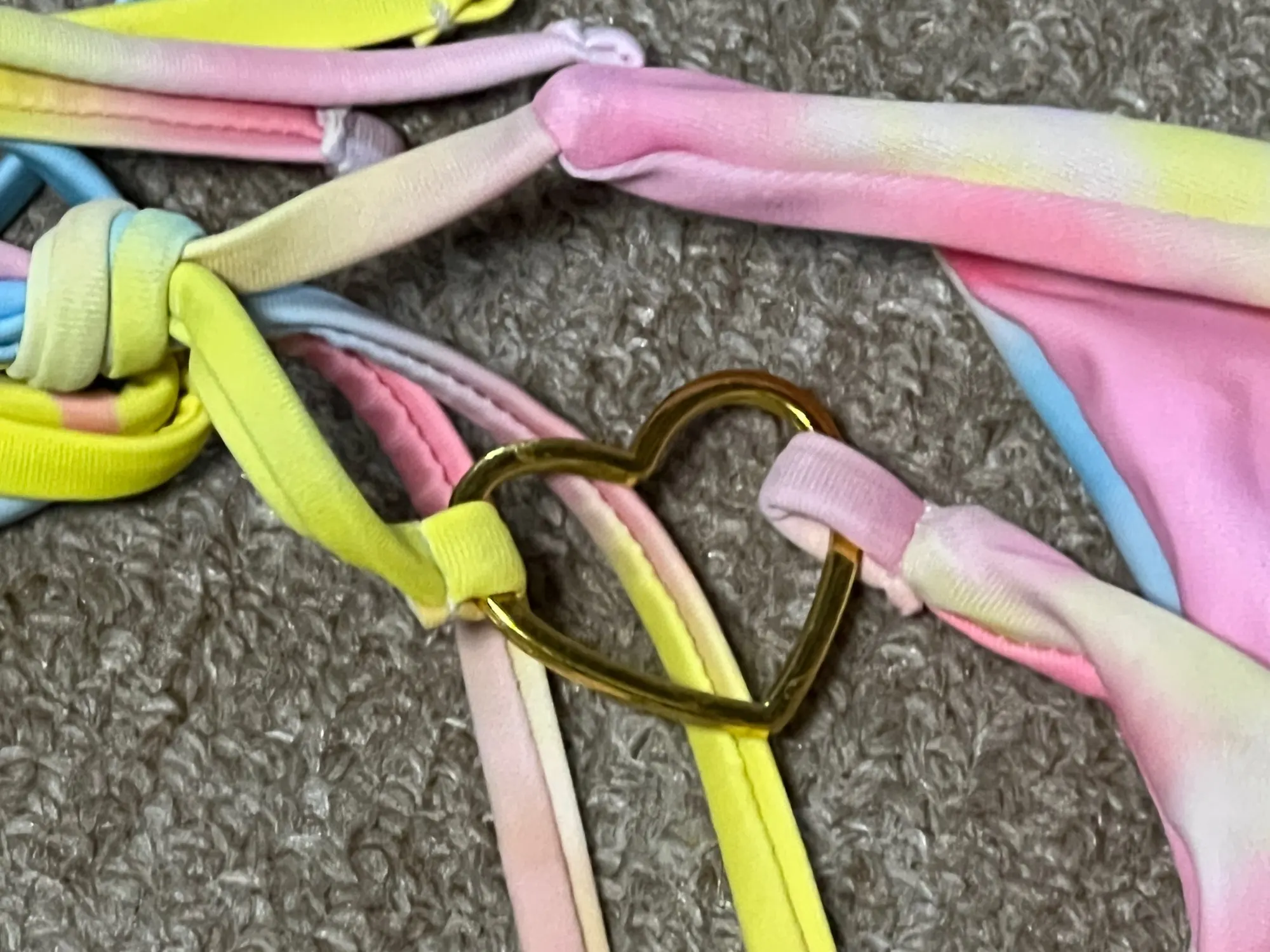 The large heart-shaped metal was really nice. The raised T-back is also good. This year's waves will make you tan in this bikini. At first, it was very cheap at 683 yen, so I bought 4 sets in total, including two S sizes and two M sizes. It would be better if the inverted triangle part in the front was smaller.