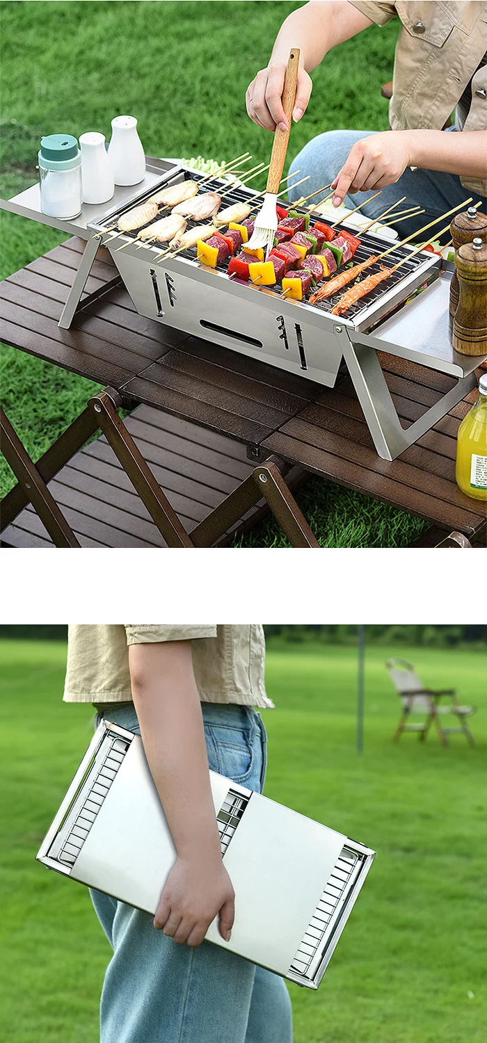 New Stainless Steel Barbecue Grill, Portable Foldable Grill for Outdoor Camping and Picnics